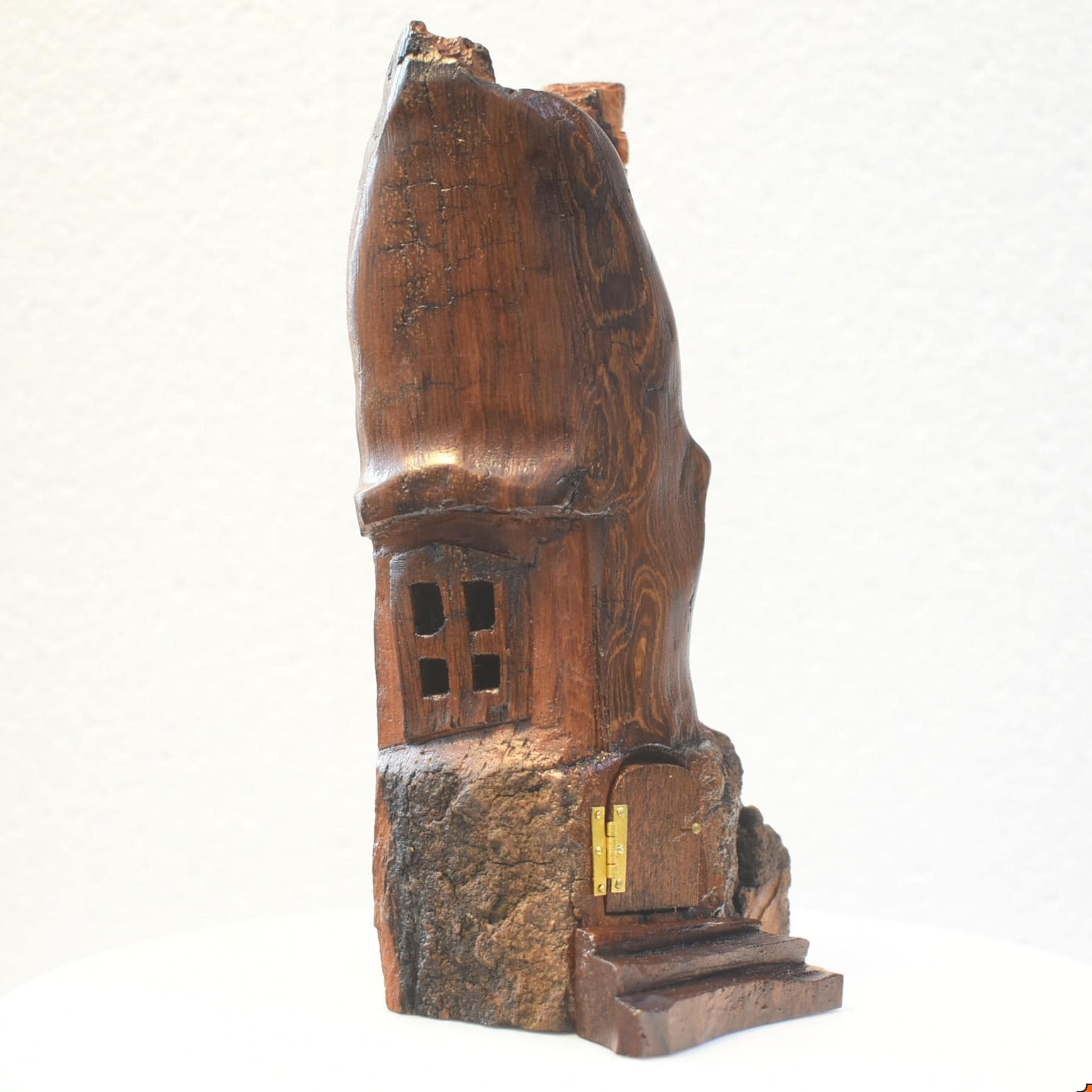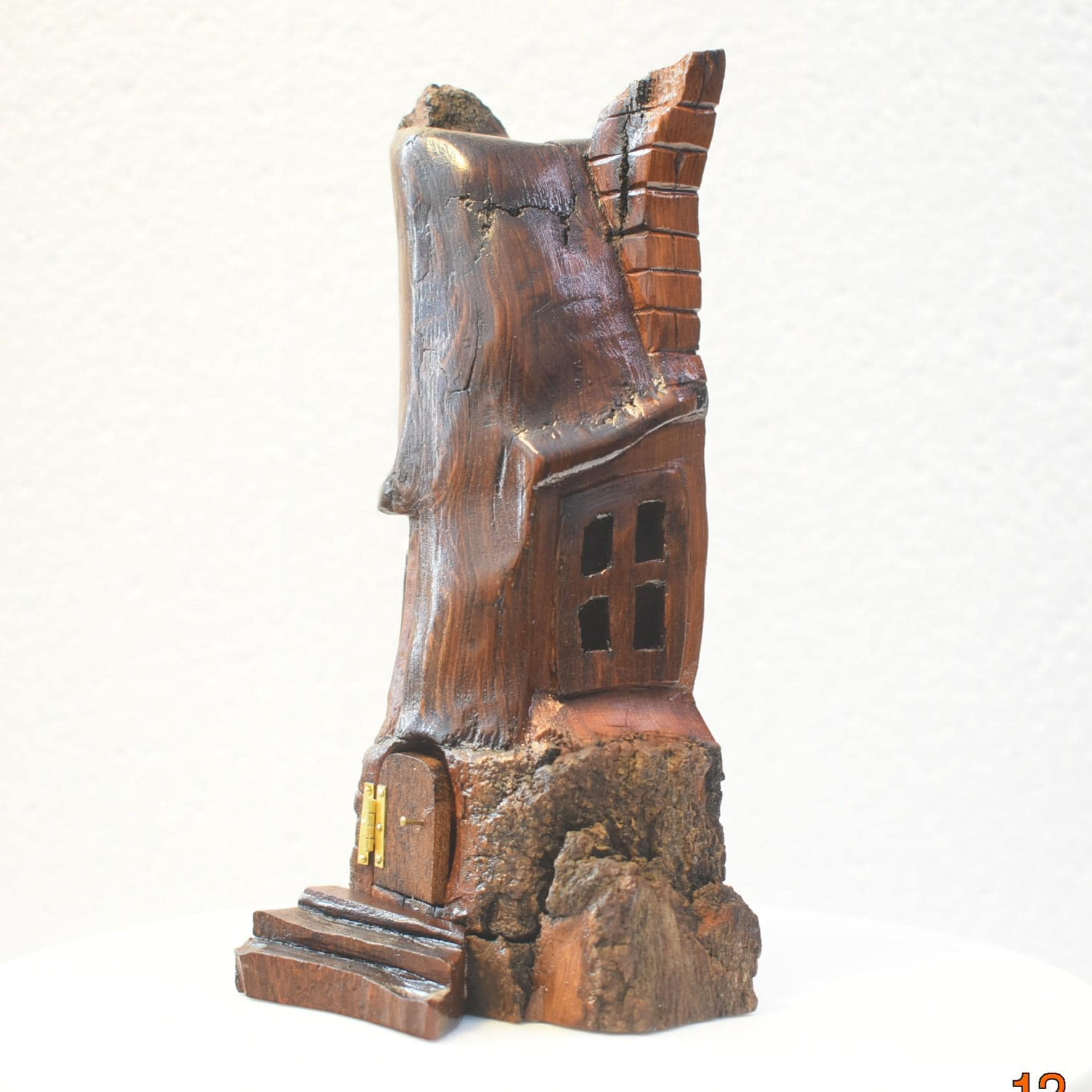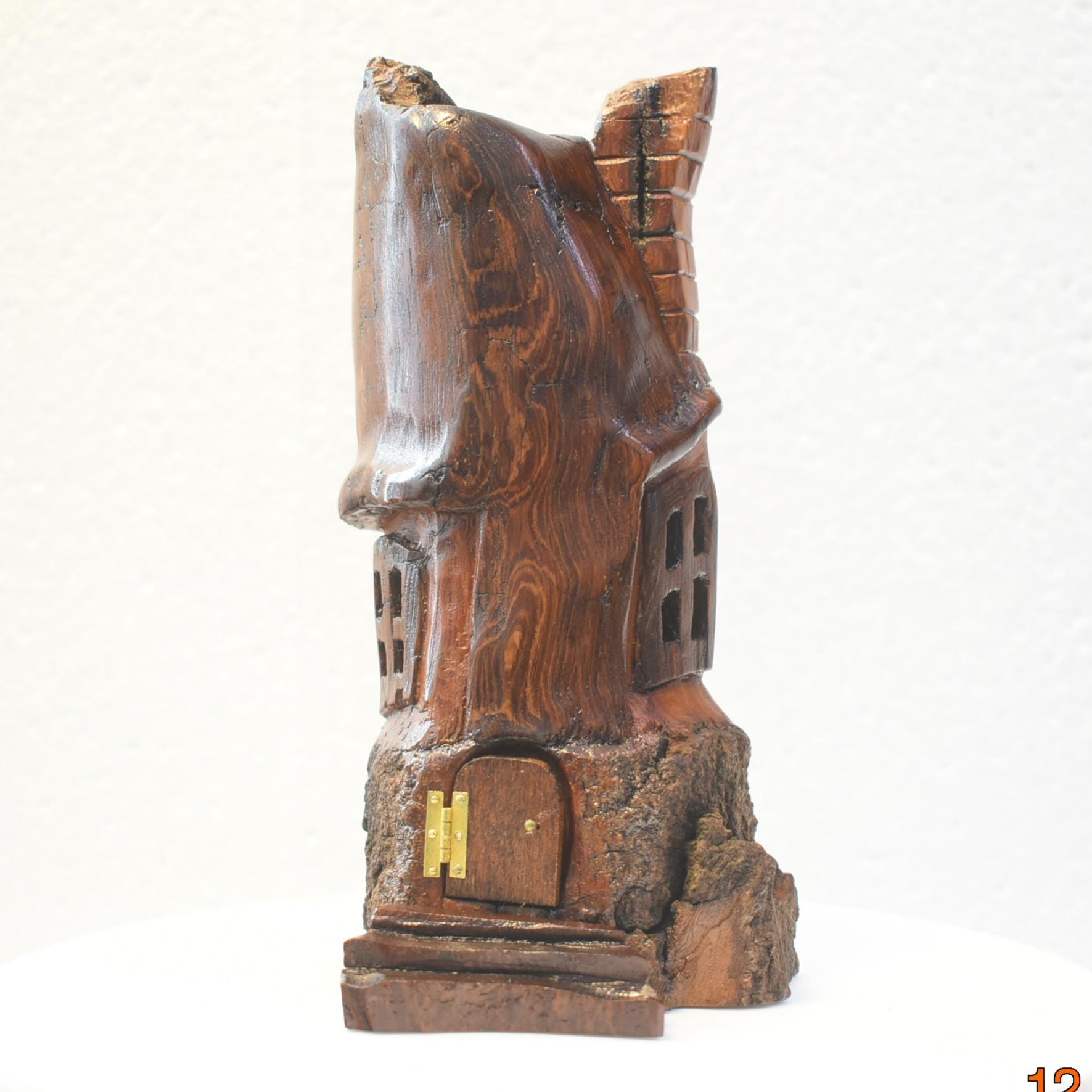 Hand Carved cottonwood bark single family mountain house. 6 x 3.5 x 2