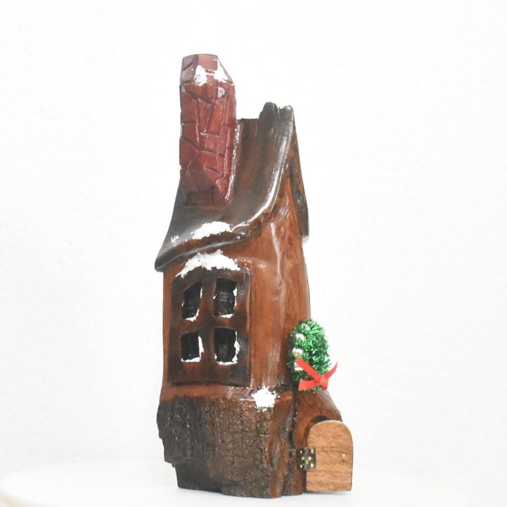 Hand Carved cottonwood bark single family mountain house. 7.5 x 3.5 x 2
