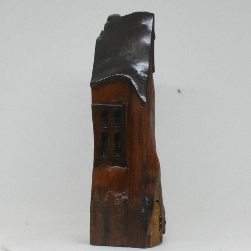 Hand Carved cottonwood bark single family house 8.5 x 3 x 2.5