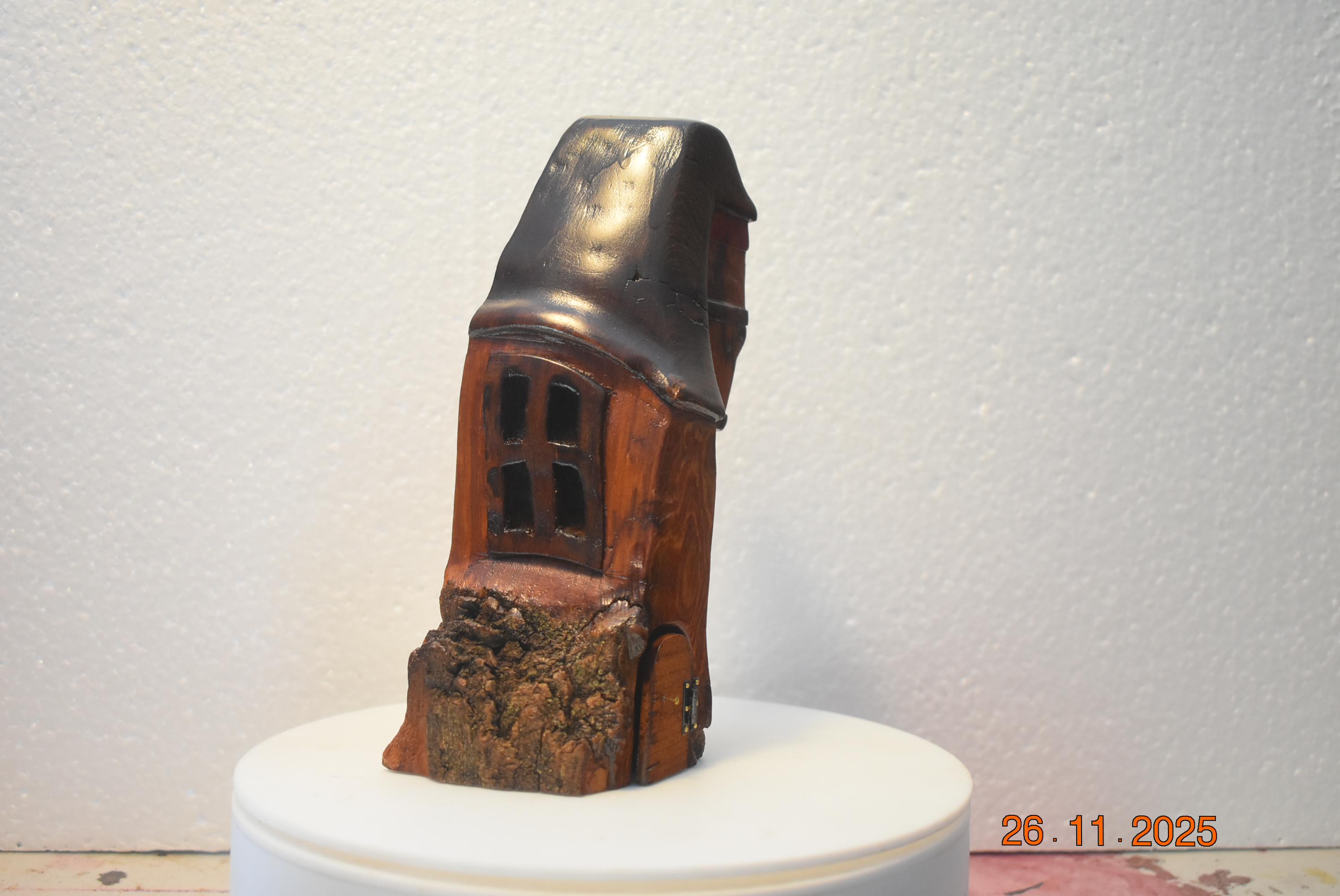 Hand Carved cottonwood bark Wee folk home. 7 X 3 X 2.5