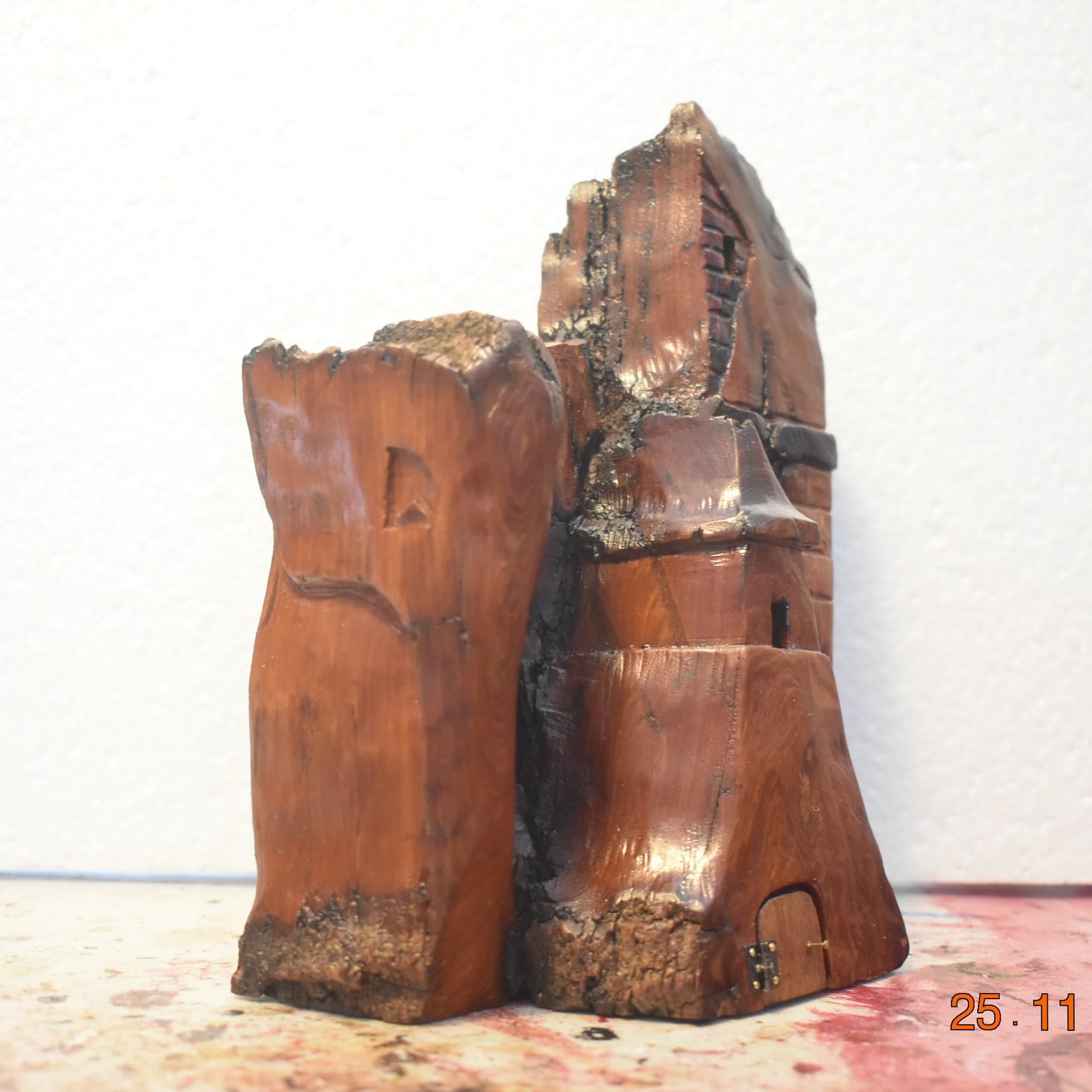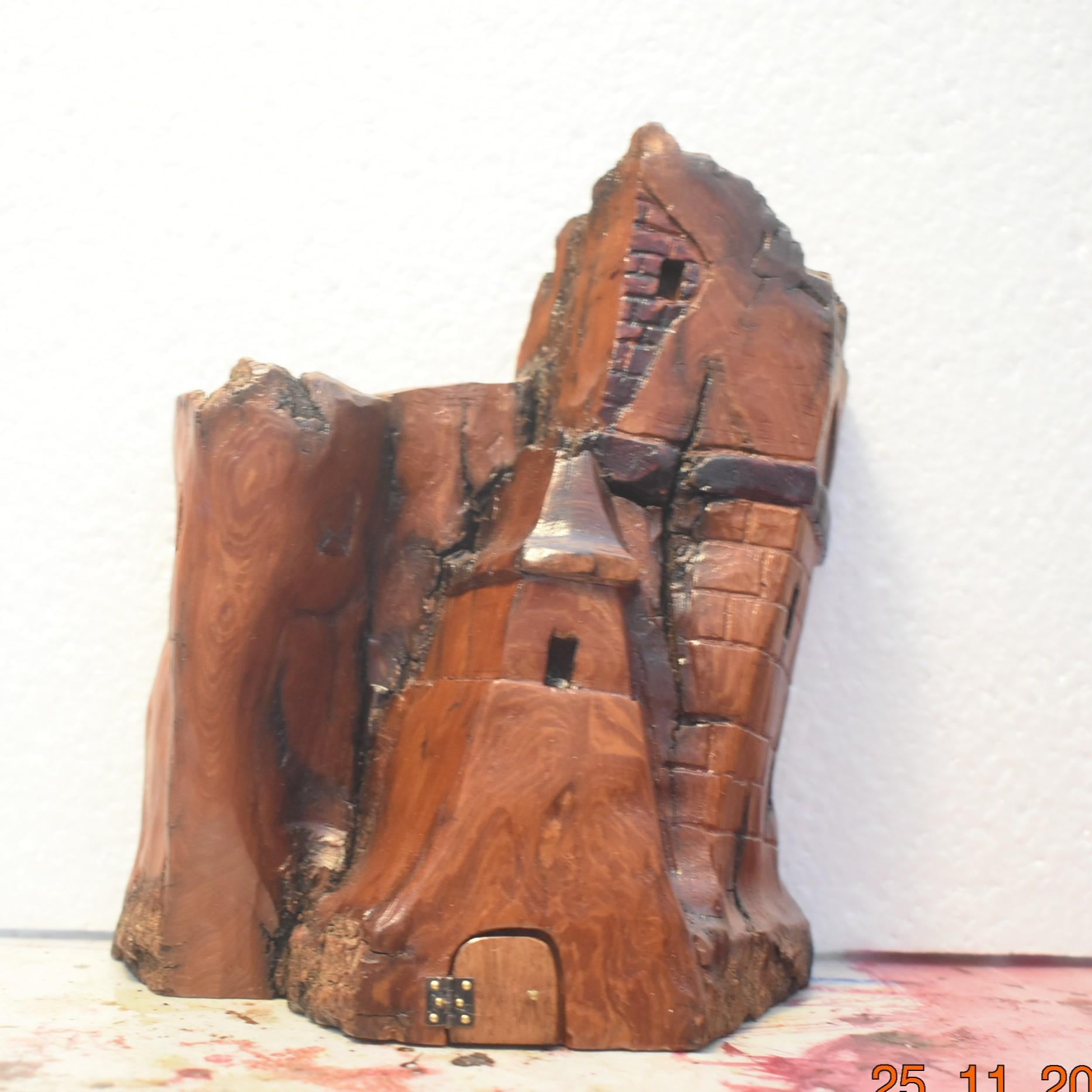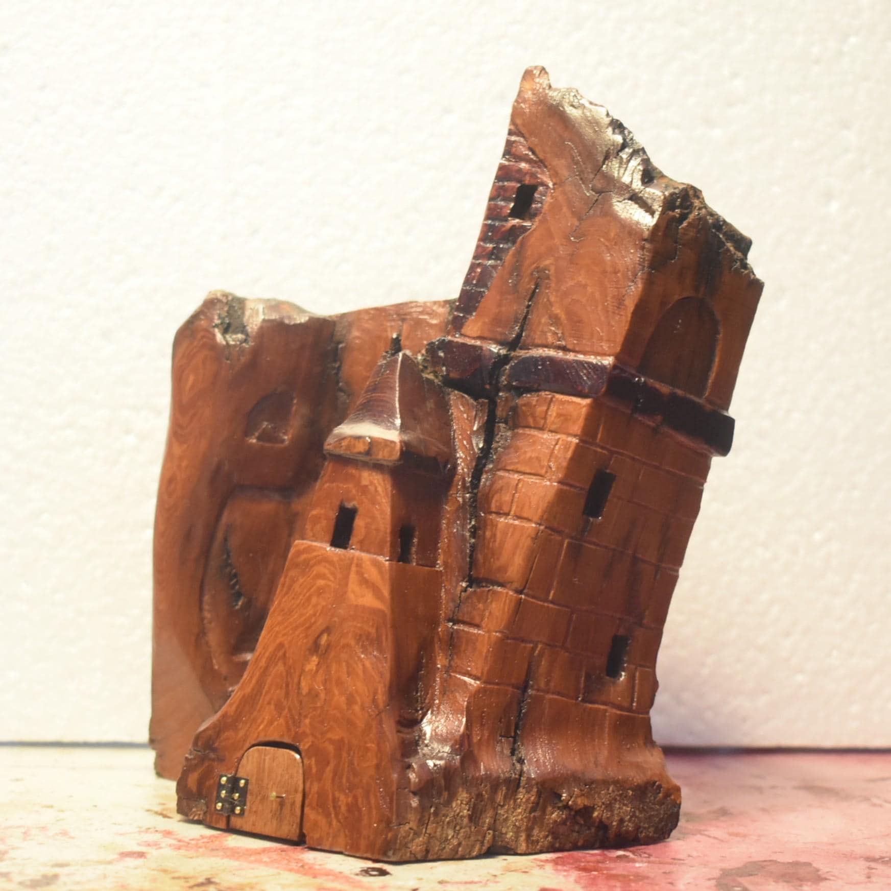 Hand Carved cottonwood bark Wee folk home. 7 X 6 X 3