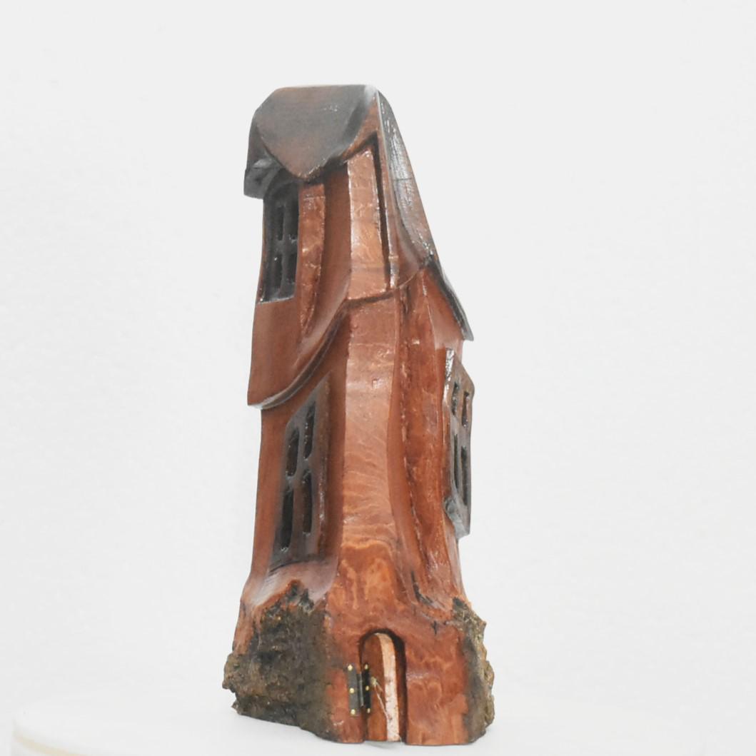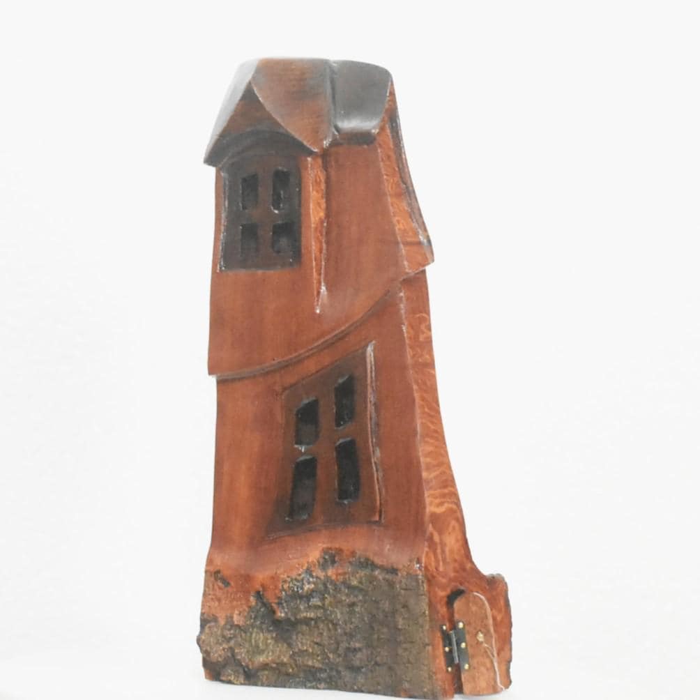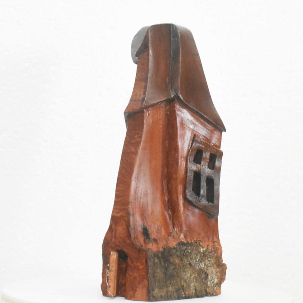 One of a kind Hand Carved cottonwood bark Wee folk home. 7.5 x 3 x 3