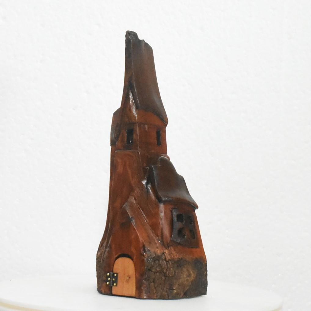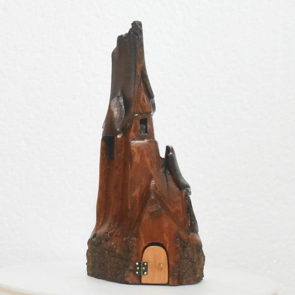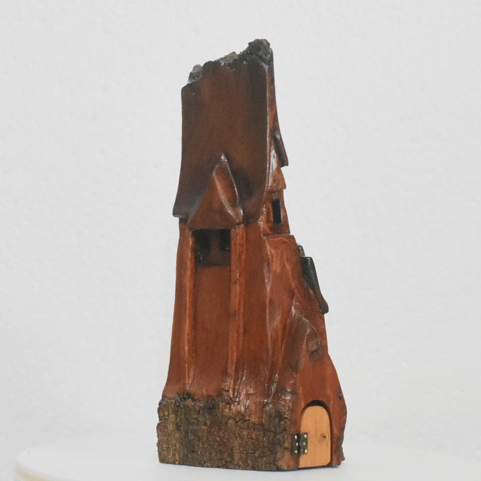 One of a kind Hand Carved cottonwood bark Wee folk home. 7 x 3 x 2.5