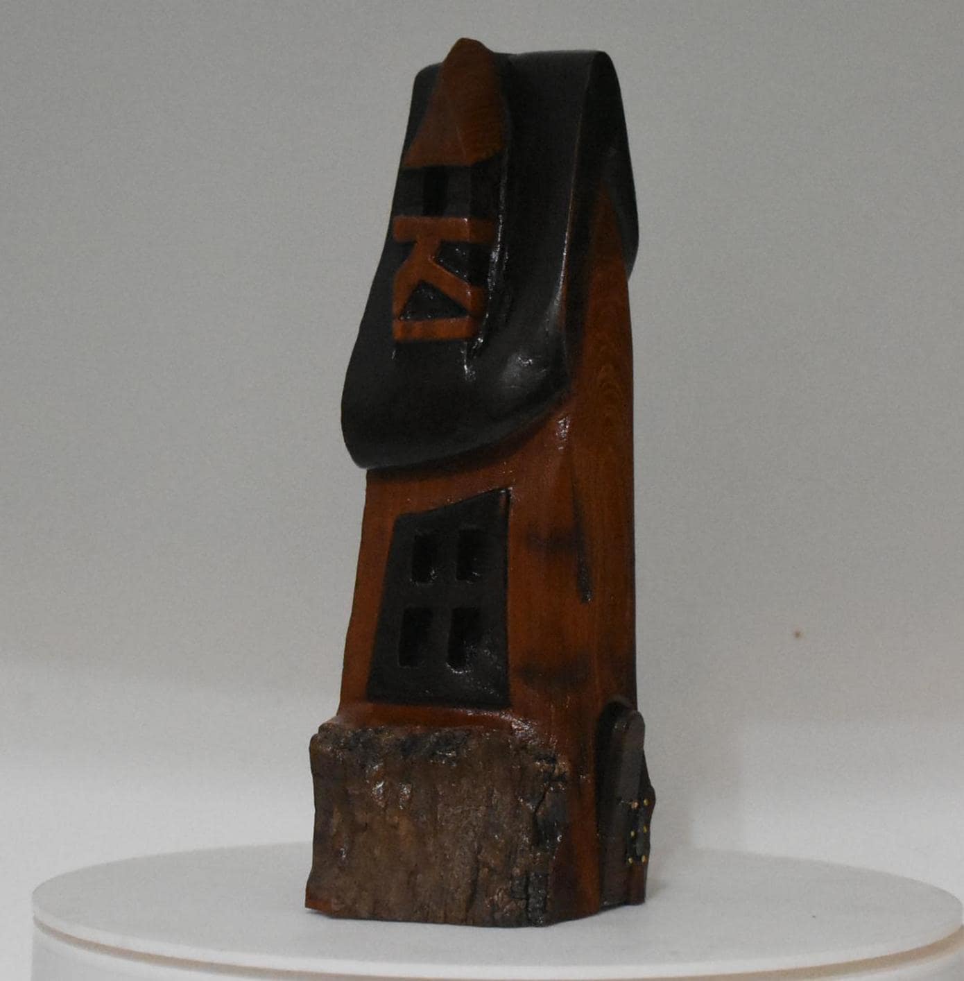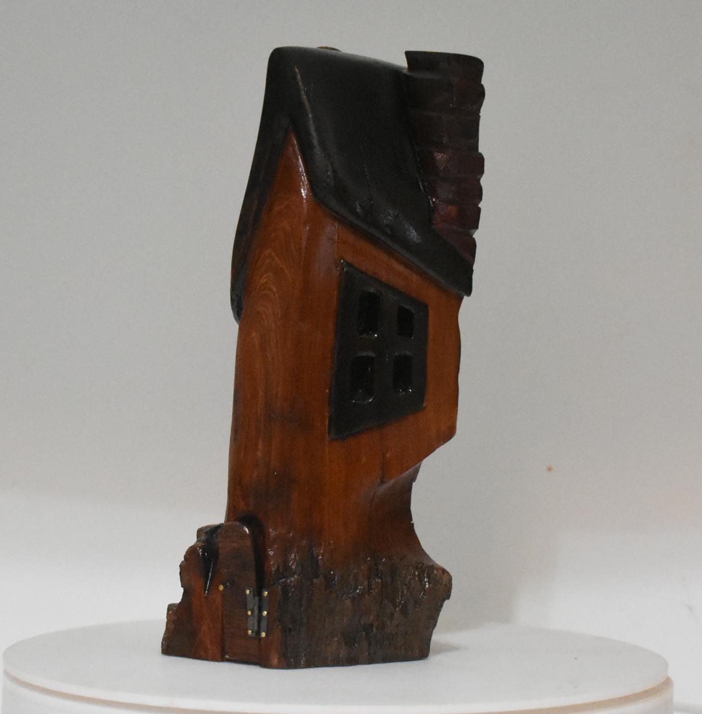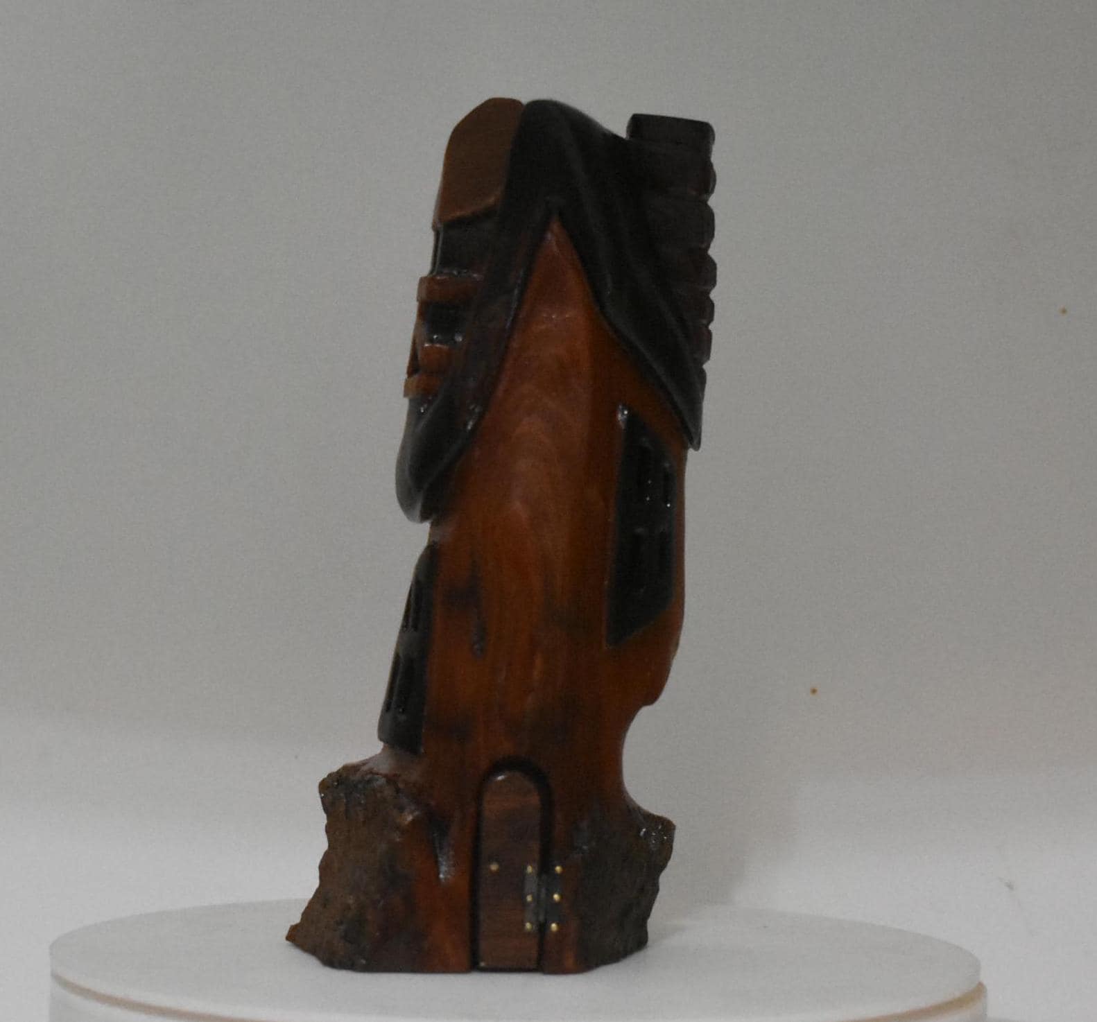 One of a kind Hand Carved cottonwood bark Wee folk home. 7.5 x 3 x 2