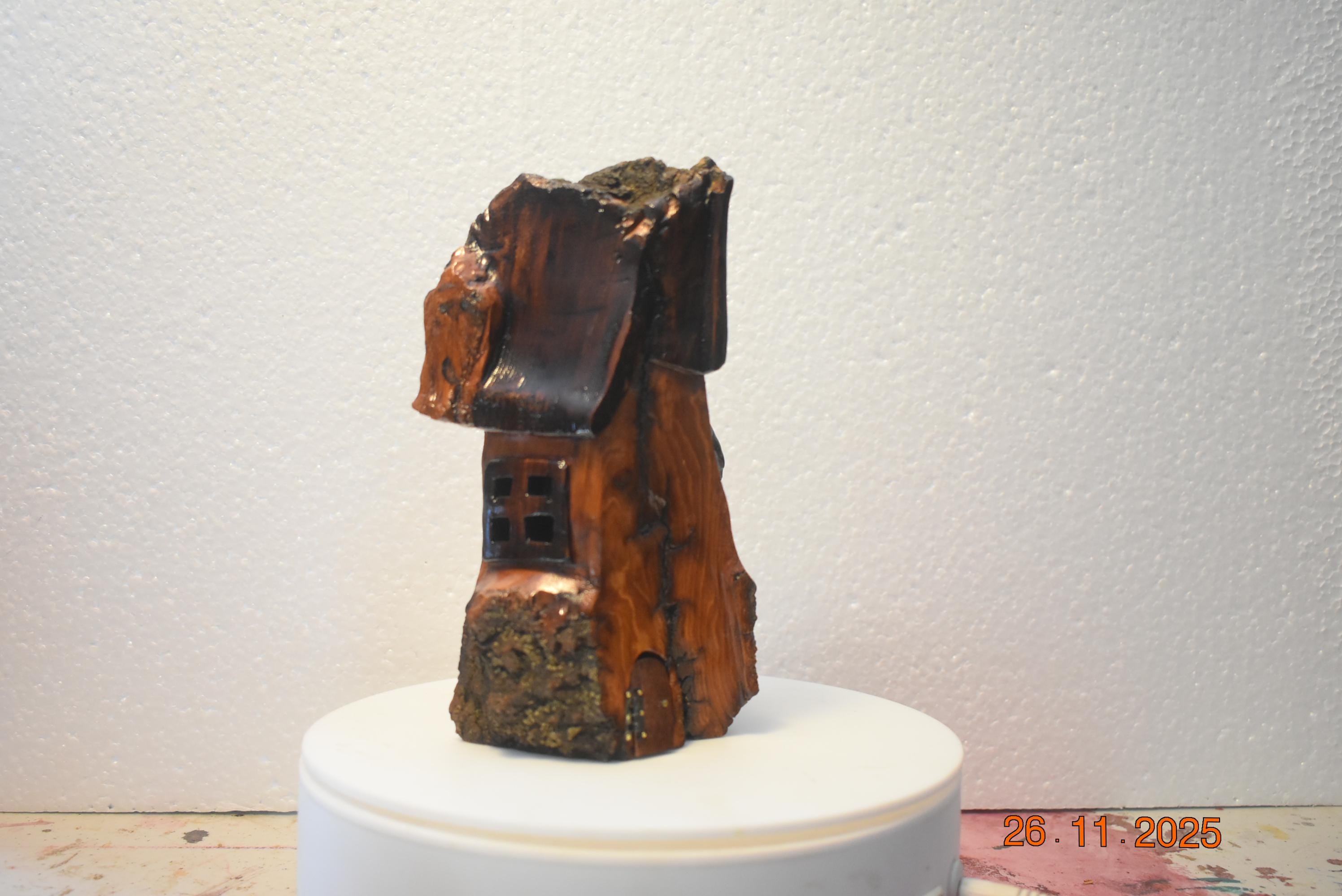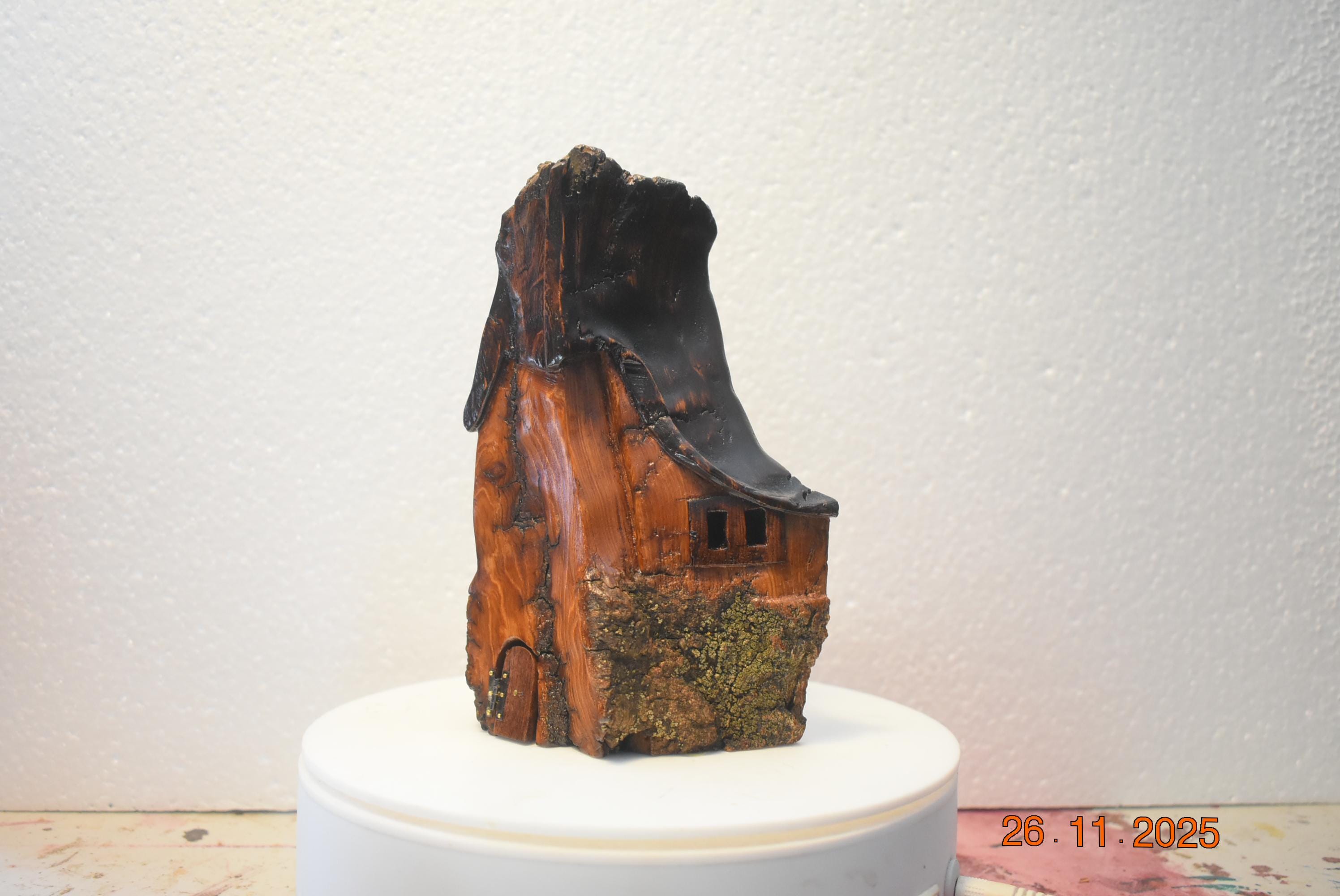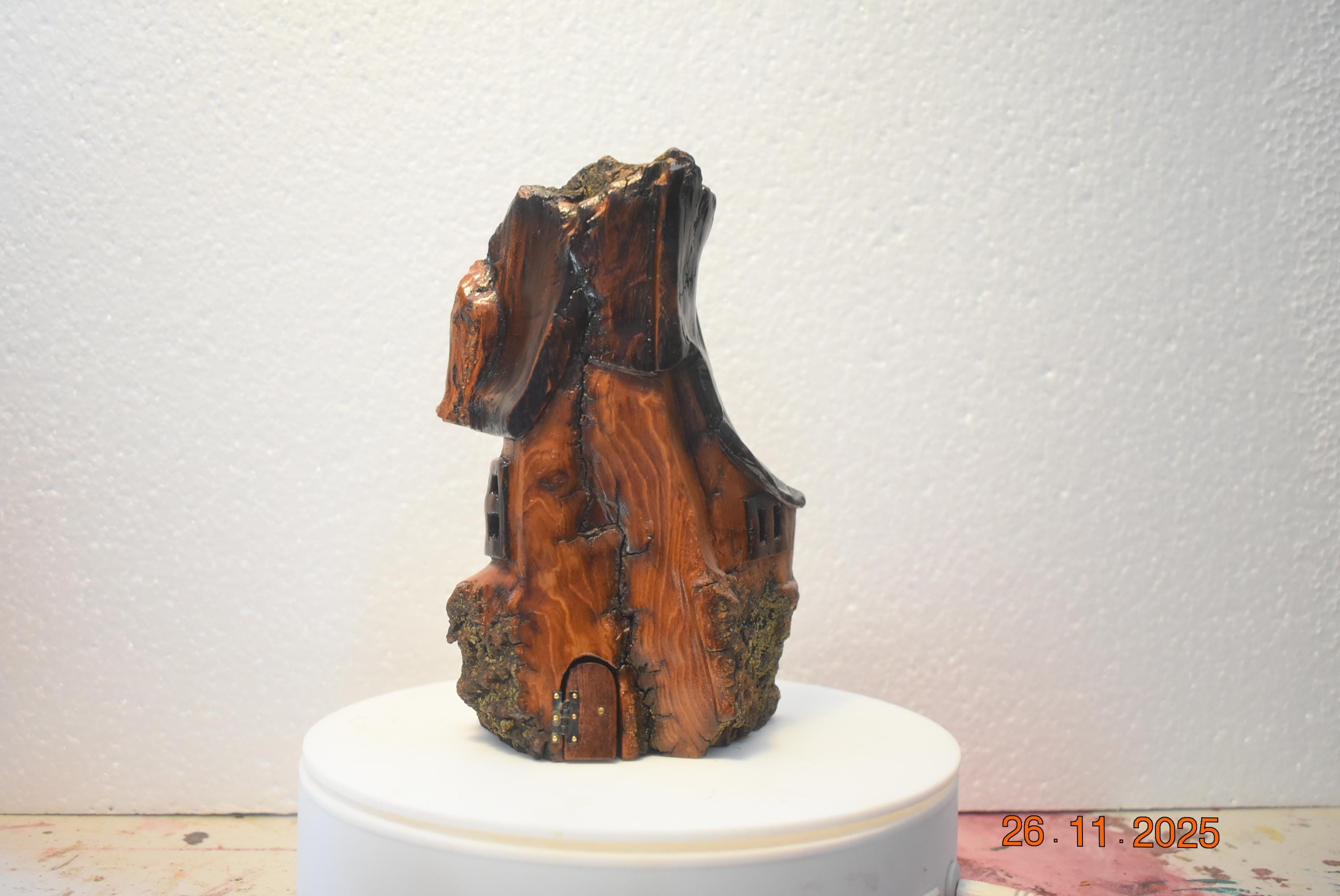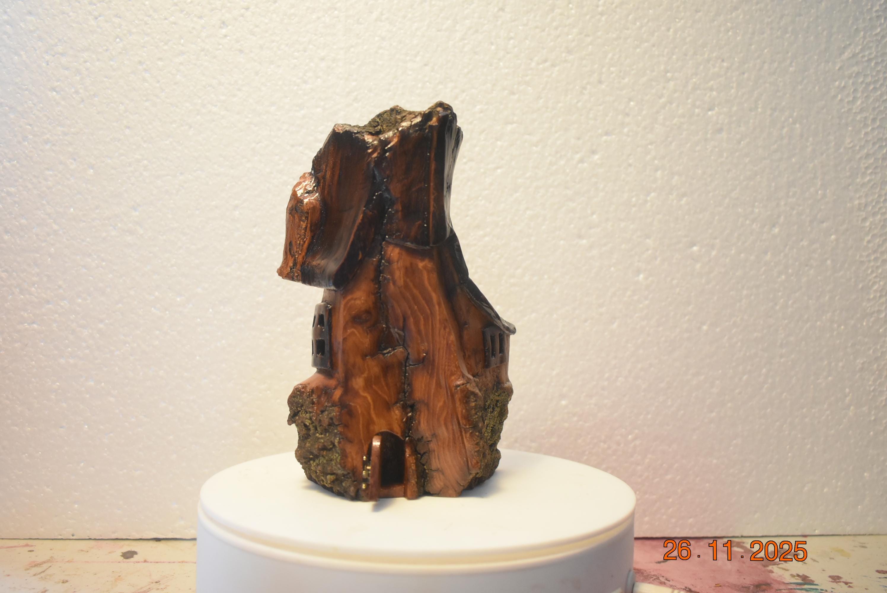 One of a kind Hand Carved cottonwood bark Wee folk home. 7 x 4.5 x 2.5