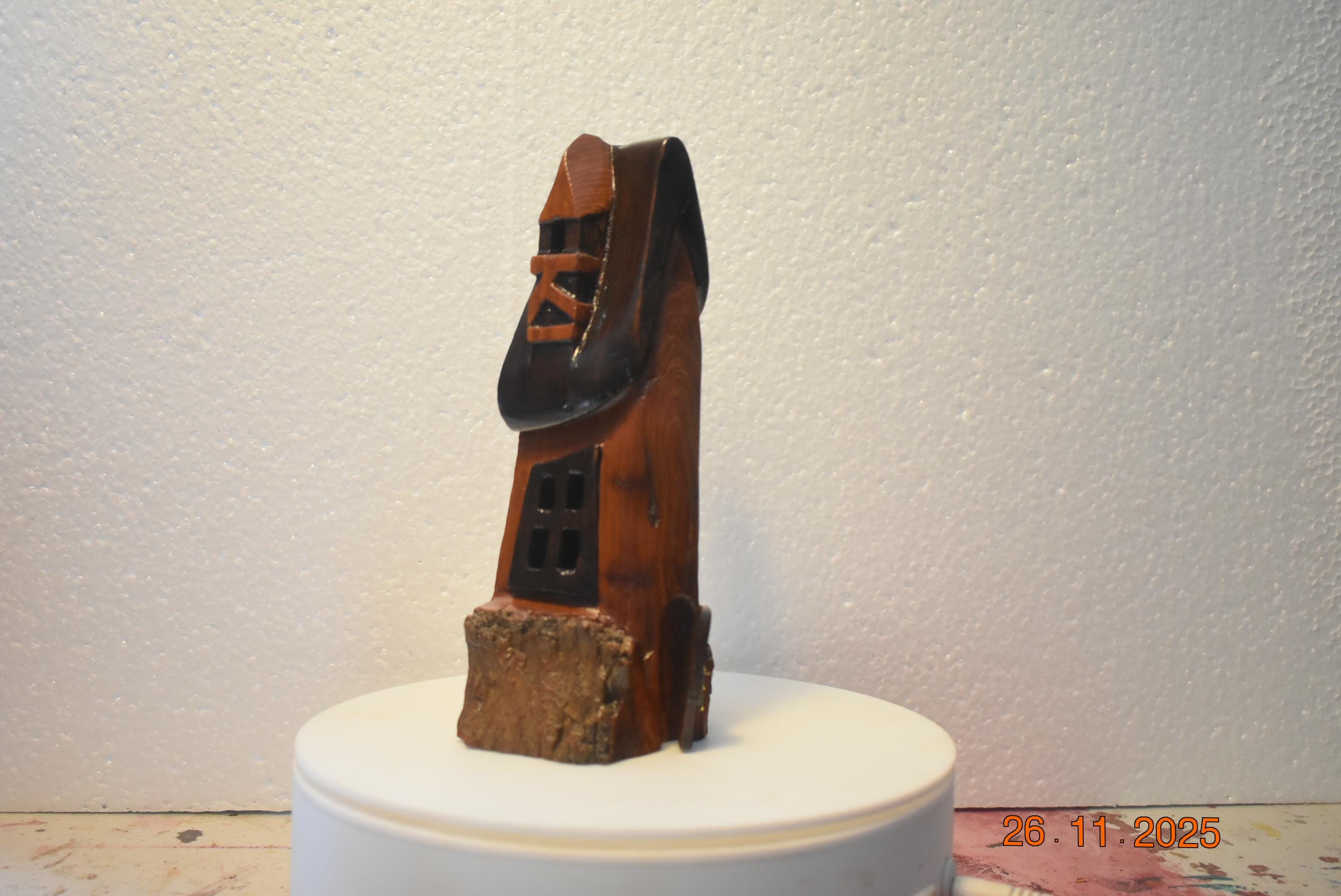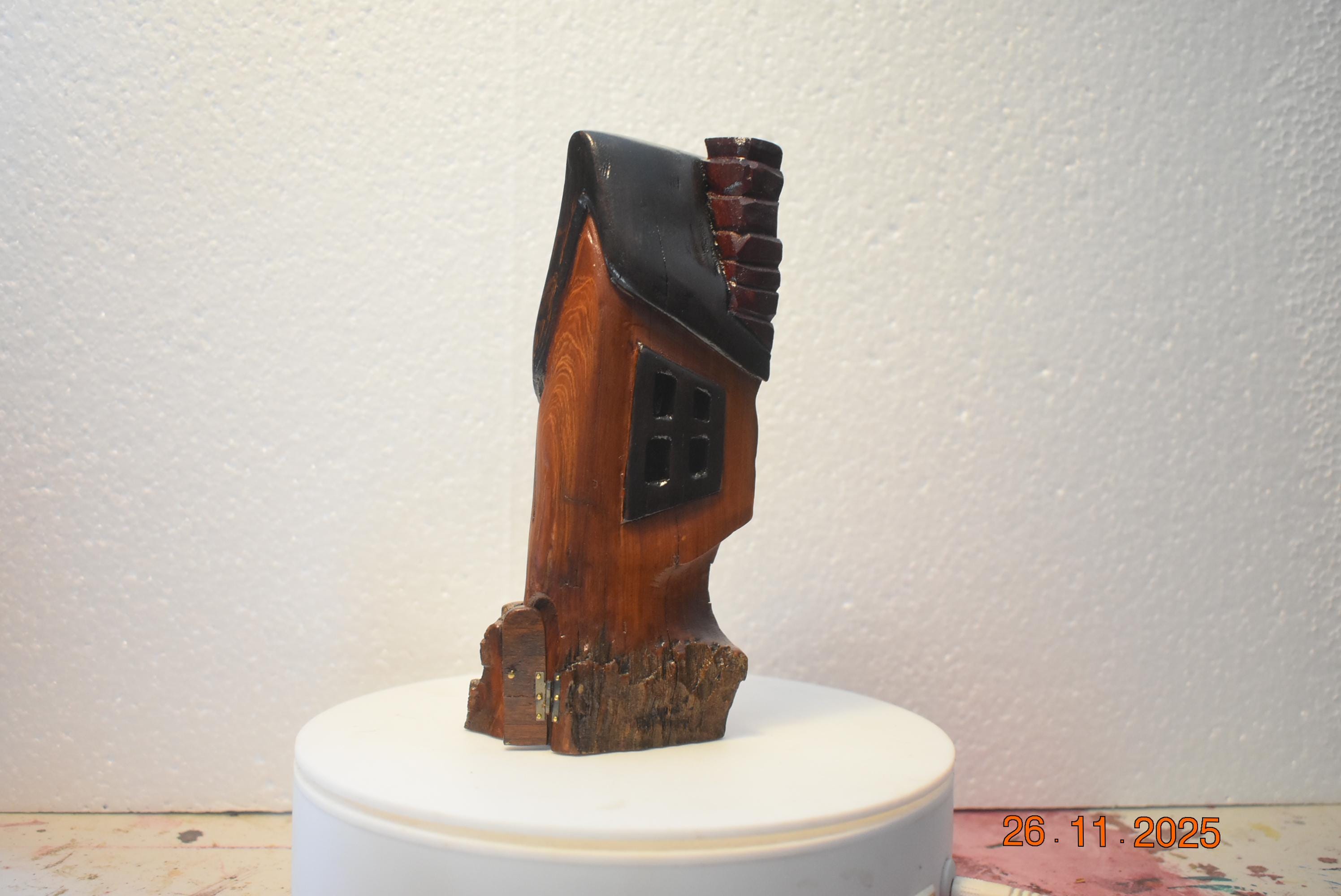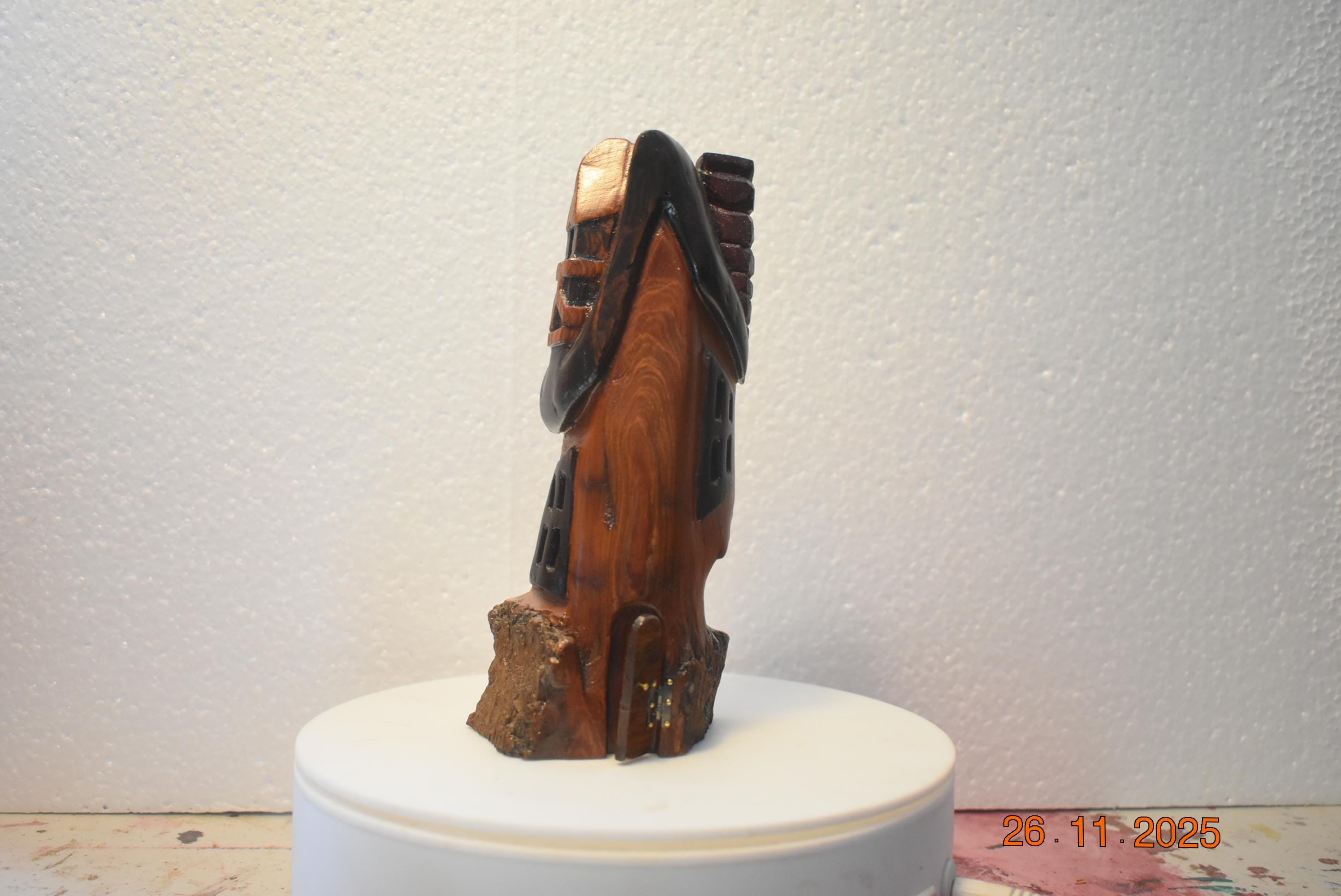 One of a kind Hand Carved cottonwood bark Wee folk home. 7 x 3 X 2