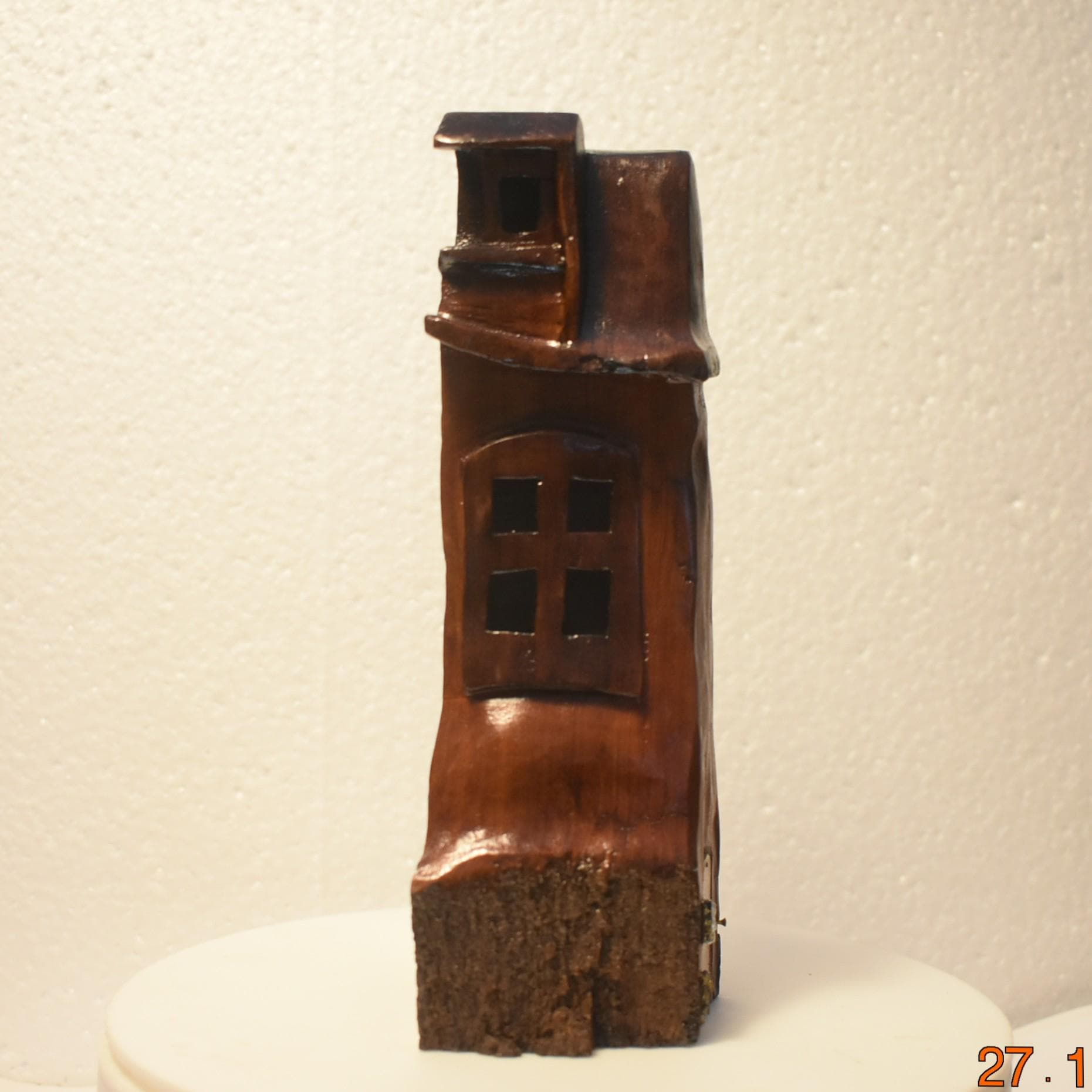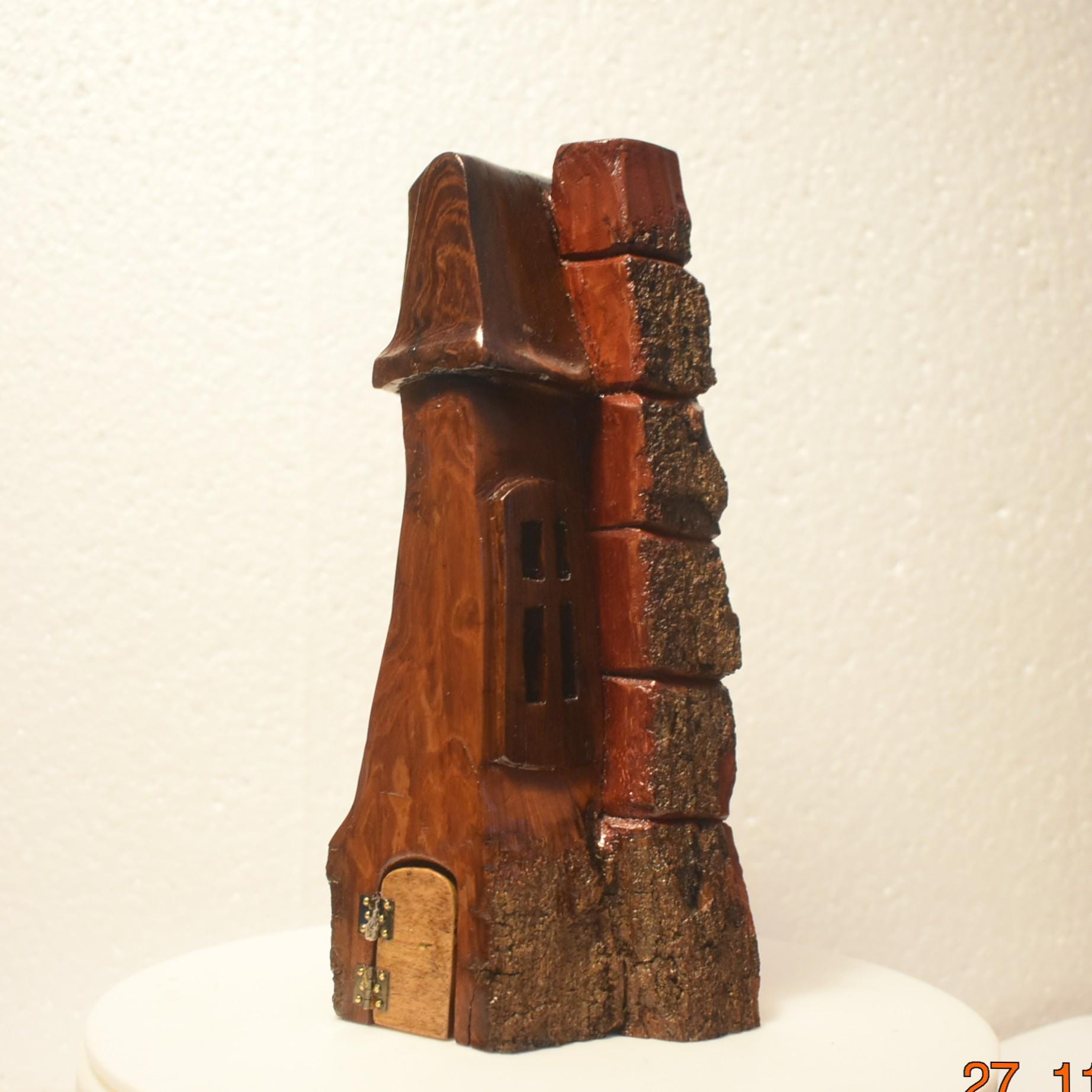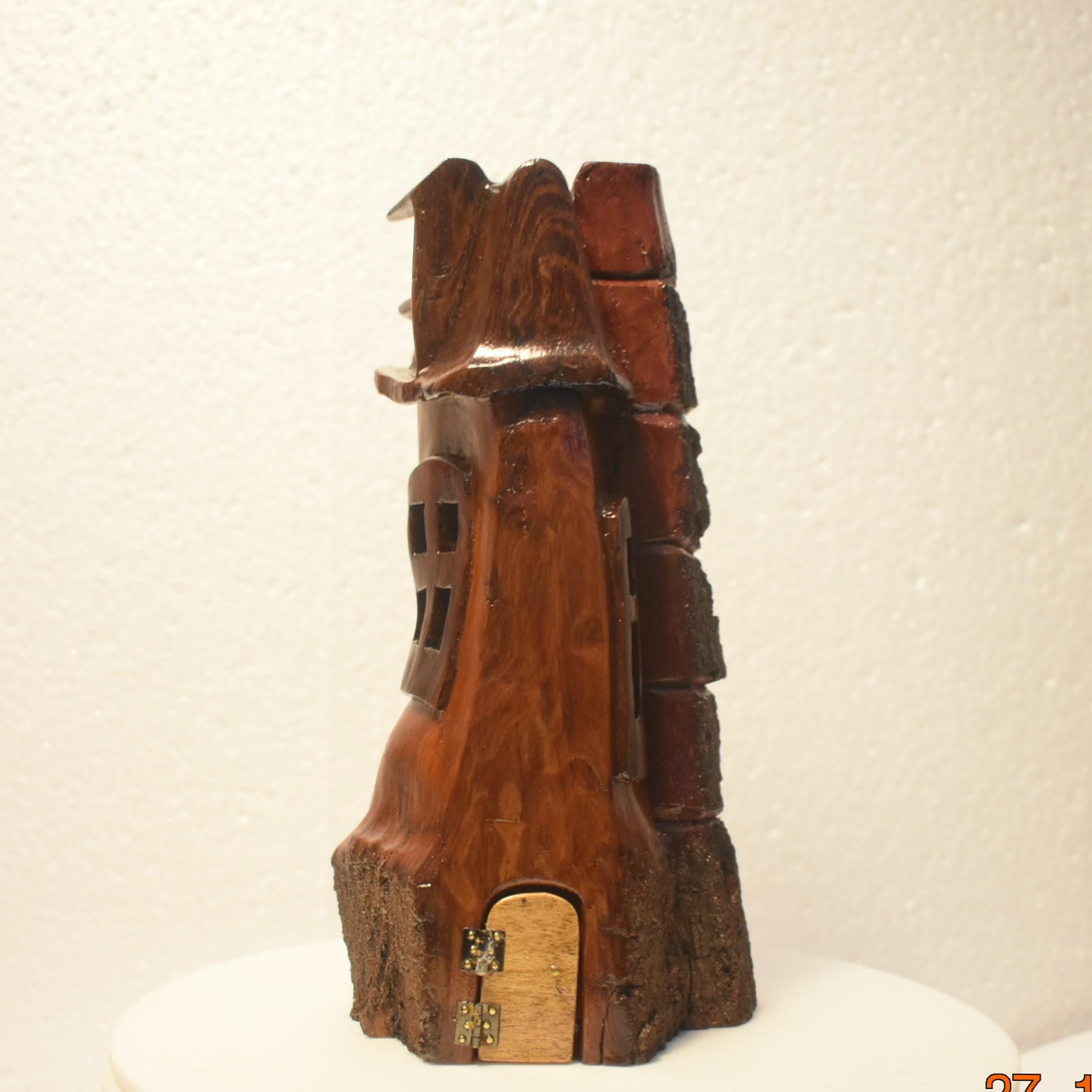 One of a kind Hand Carved cottonwood bark Wee folk home. 8 x 4 x 2.5