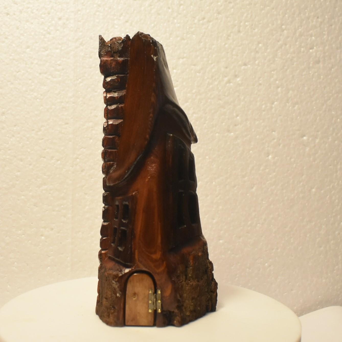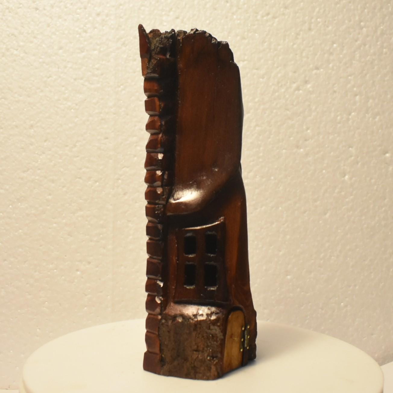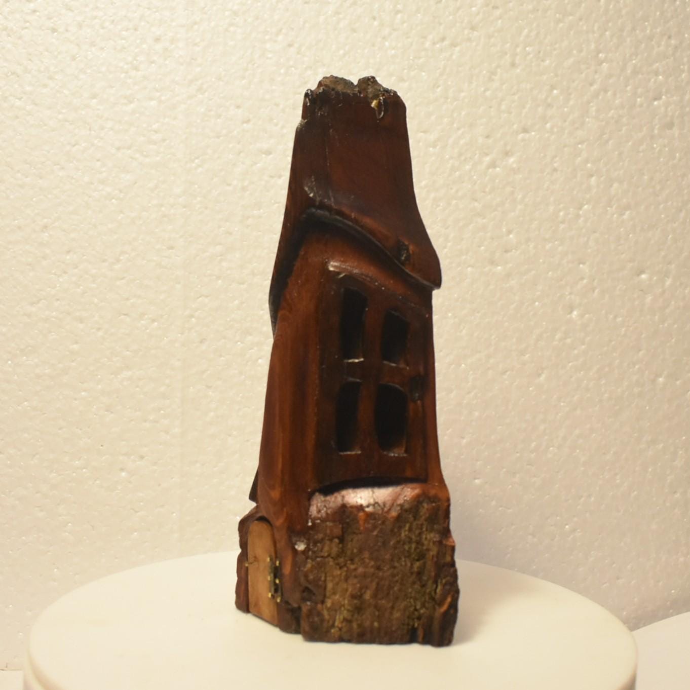 One of a kind Hand Carved cottonwood bark Wee folk home. 7 x 3.5 x 2