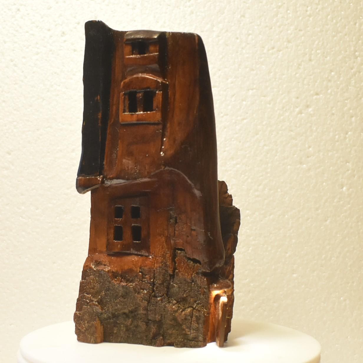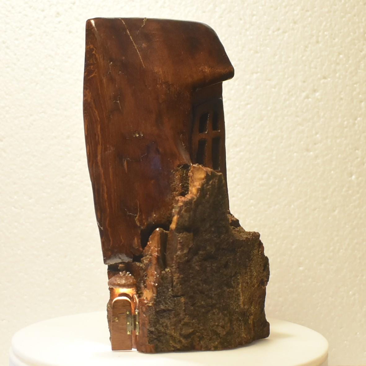 One of a kind Hand Carved cottonwood bark Wee folk home 8 x 4 x 3.5