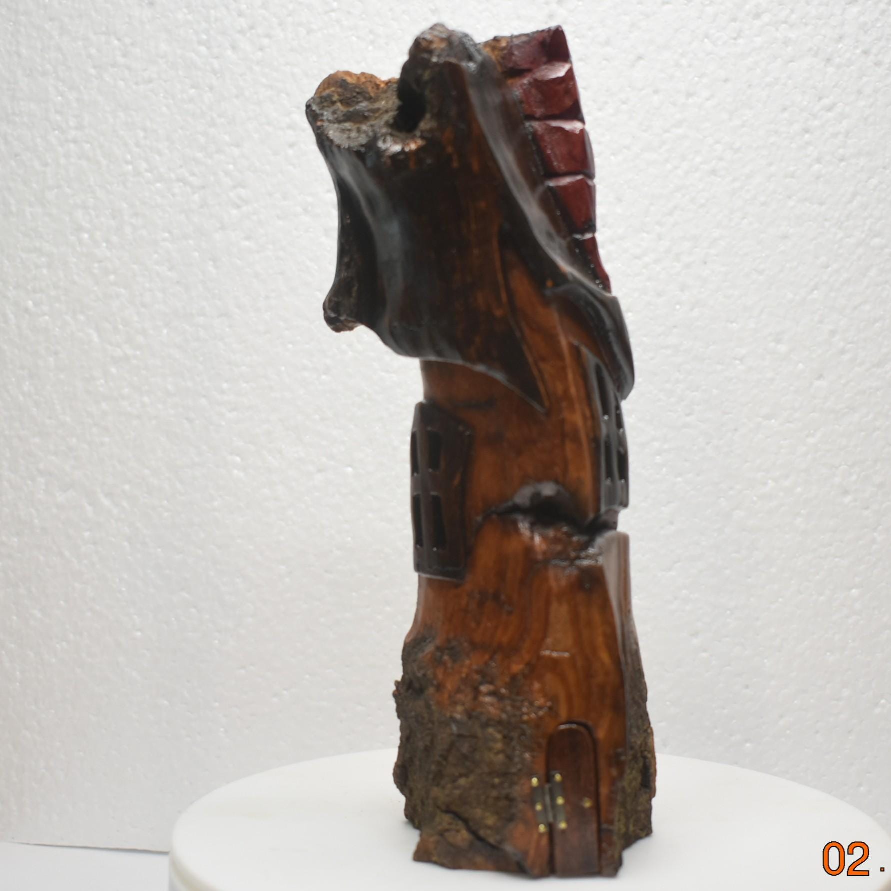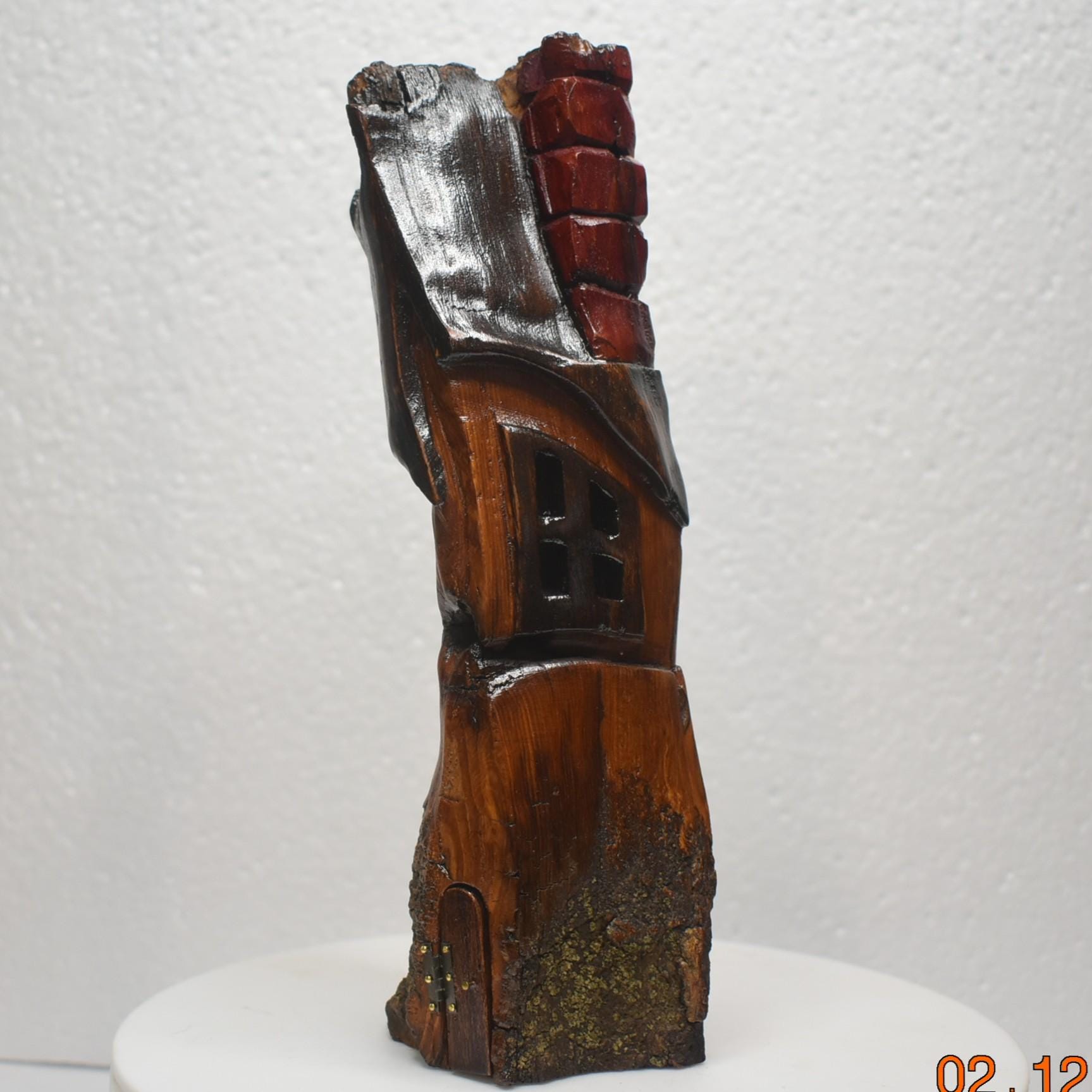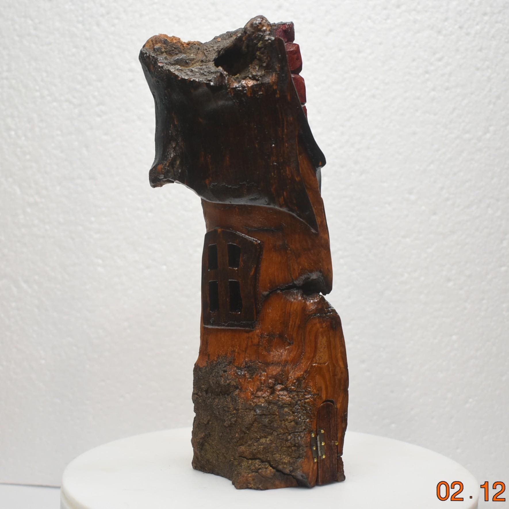 One of a kind Hand Carved cottonwood bark Wee folk home. 8.5 x 3 x 3