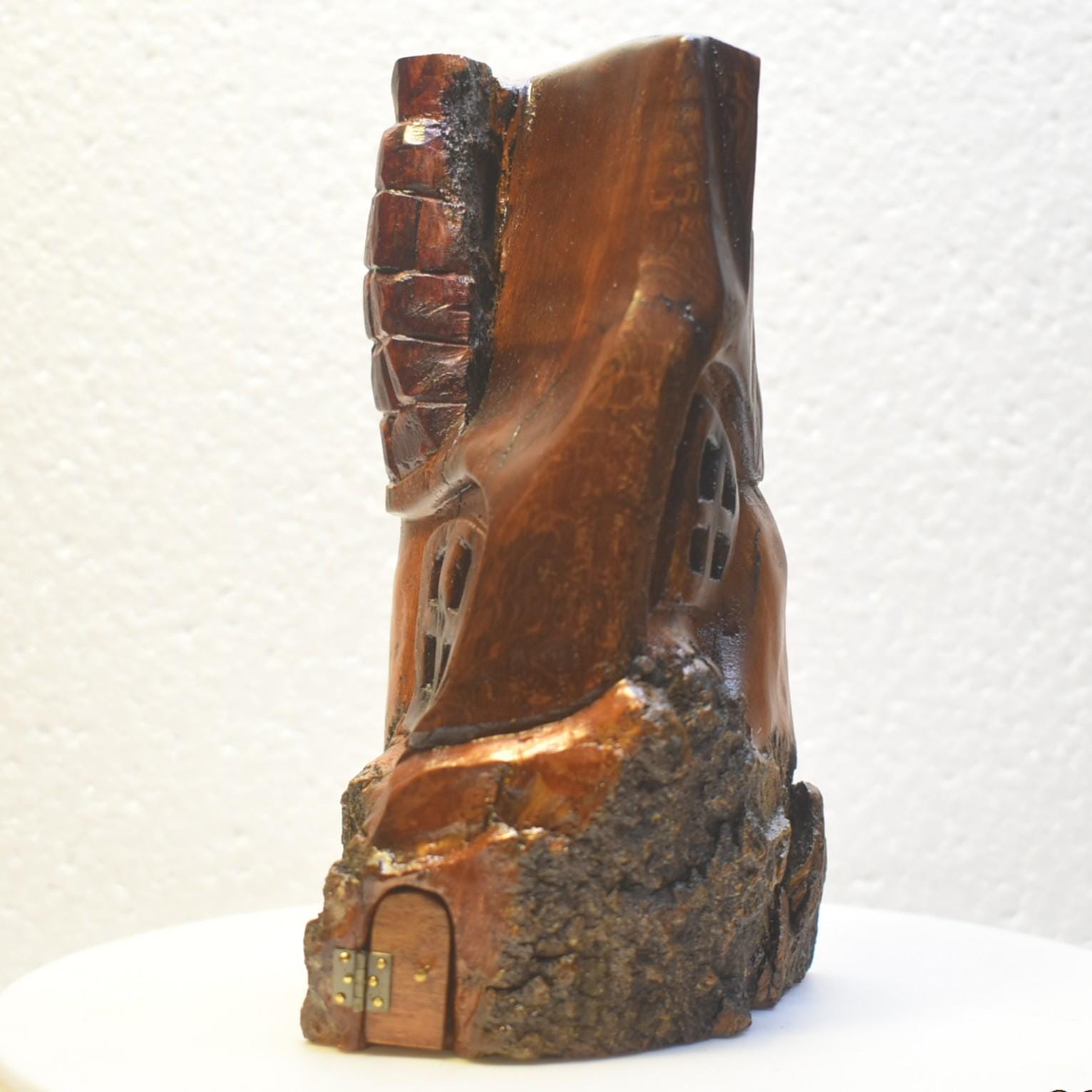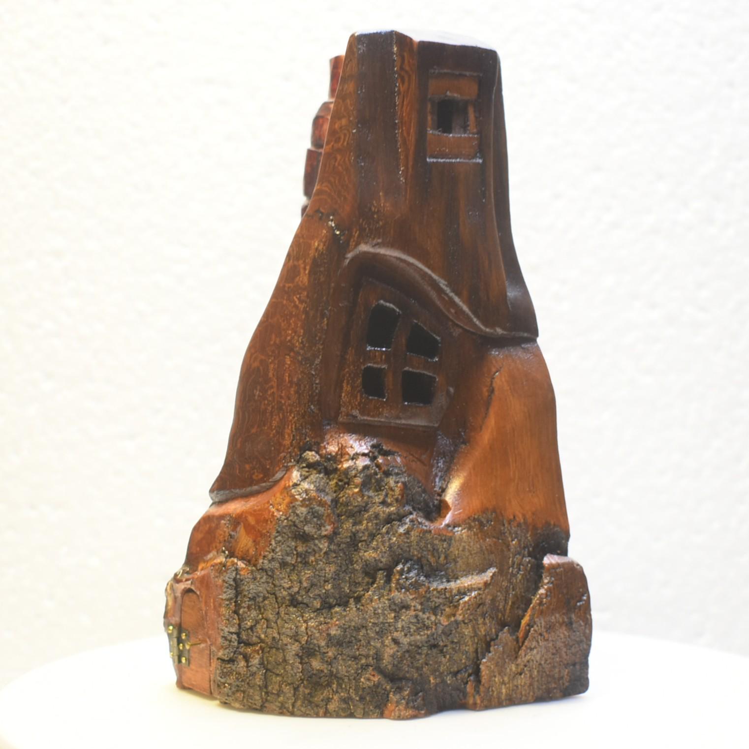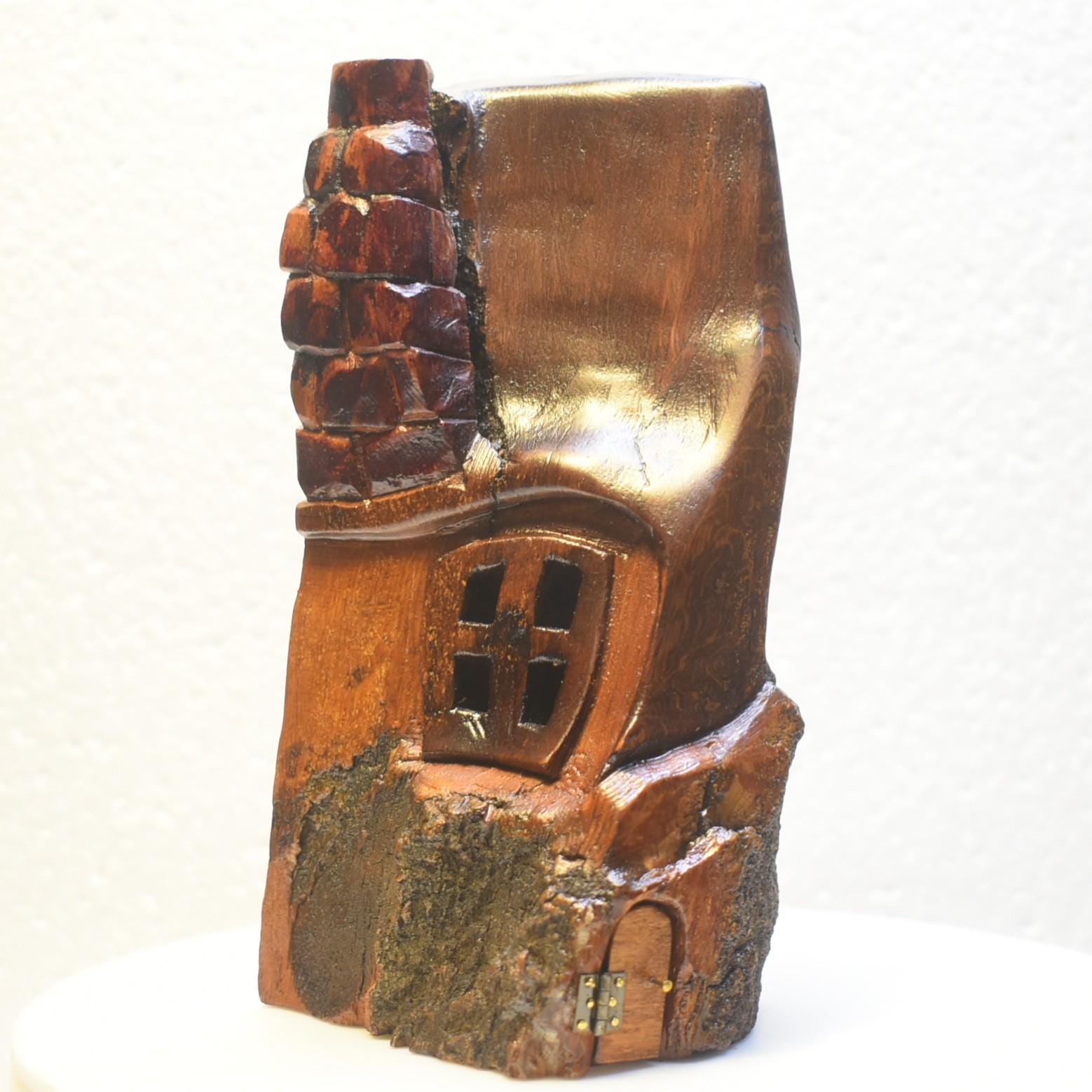 One of a kind Hand Carved cottonwood bark Wee folk home. 6 x 3 x 3