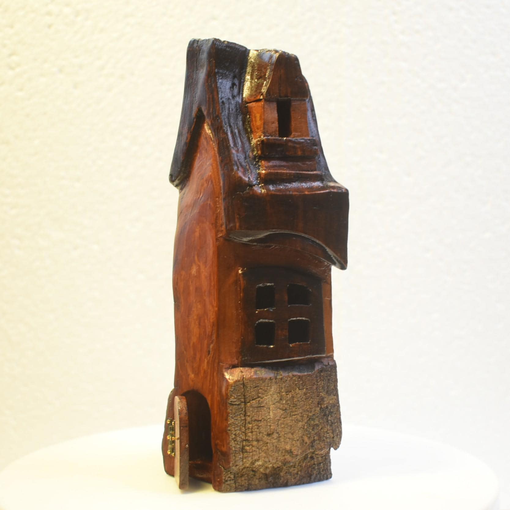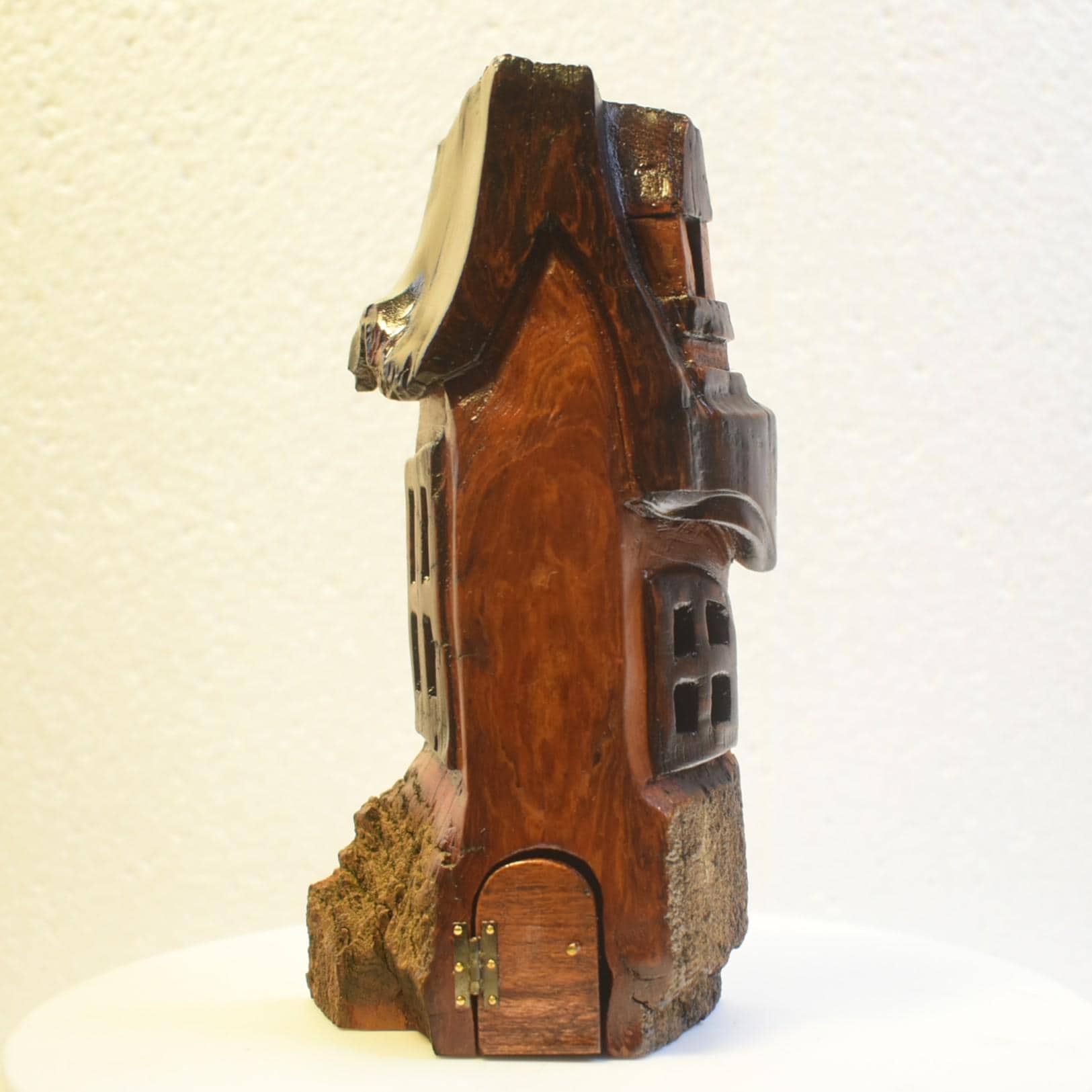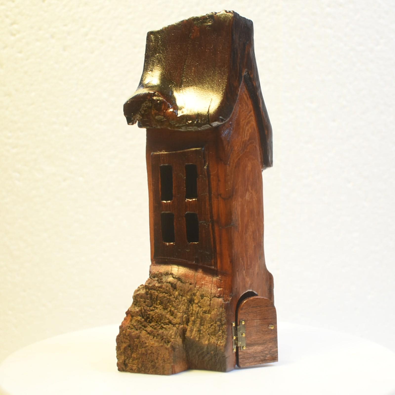 One of a kind Hand Carved cottonwood bark Wee folk home. 6.5 X 3 X 2