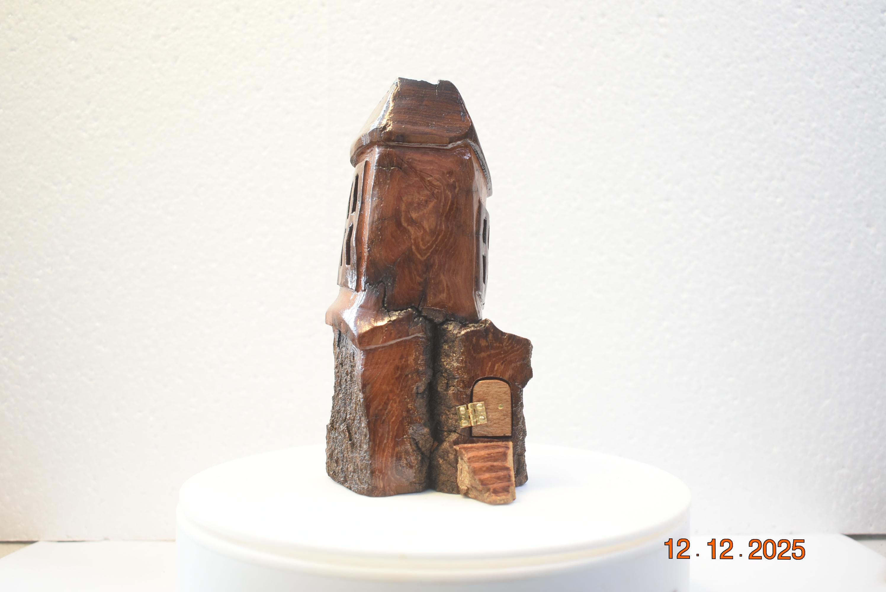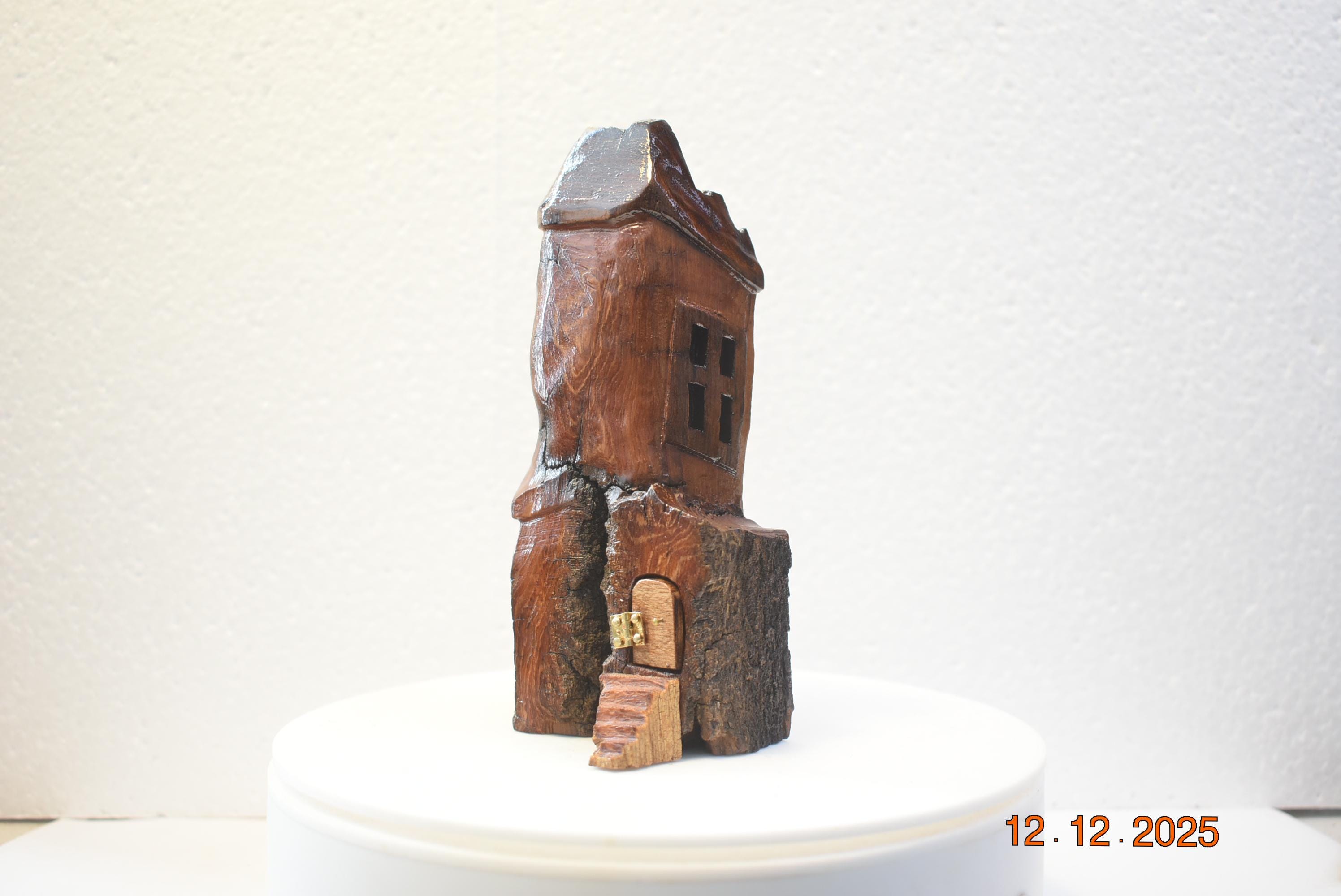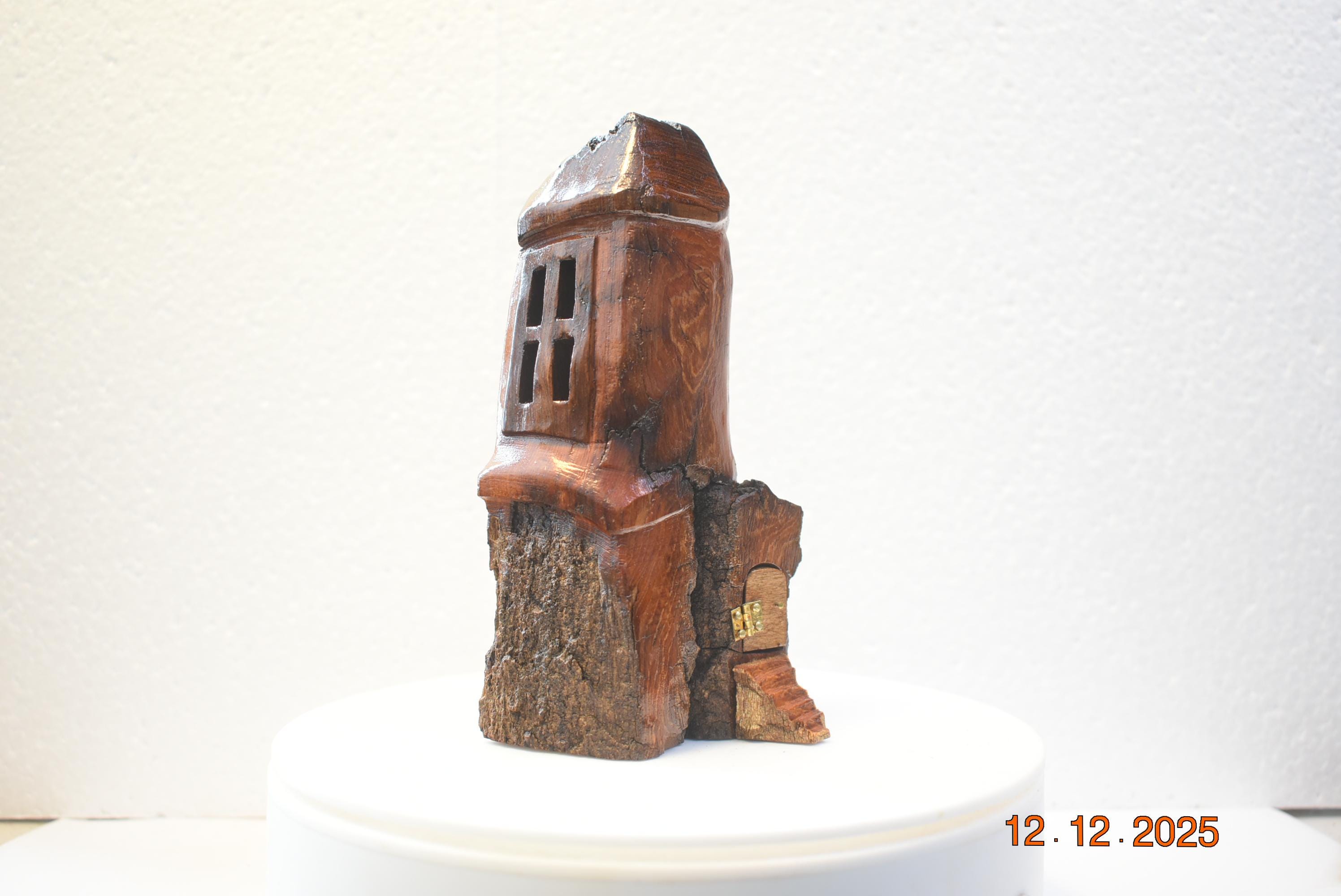 One of a kind Hand Carved cottonwood bark Wee folk home. 6 x 3 x 3