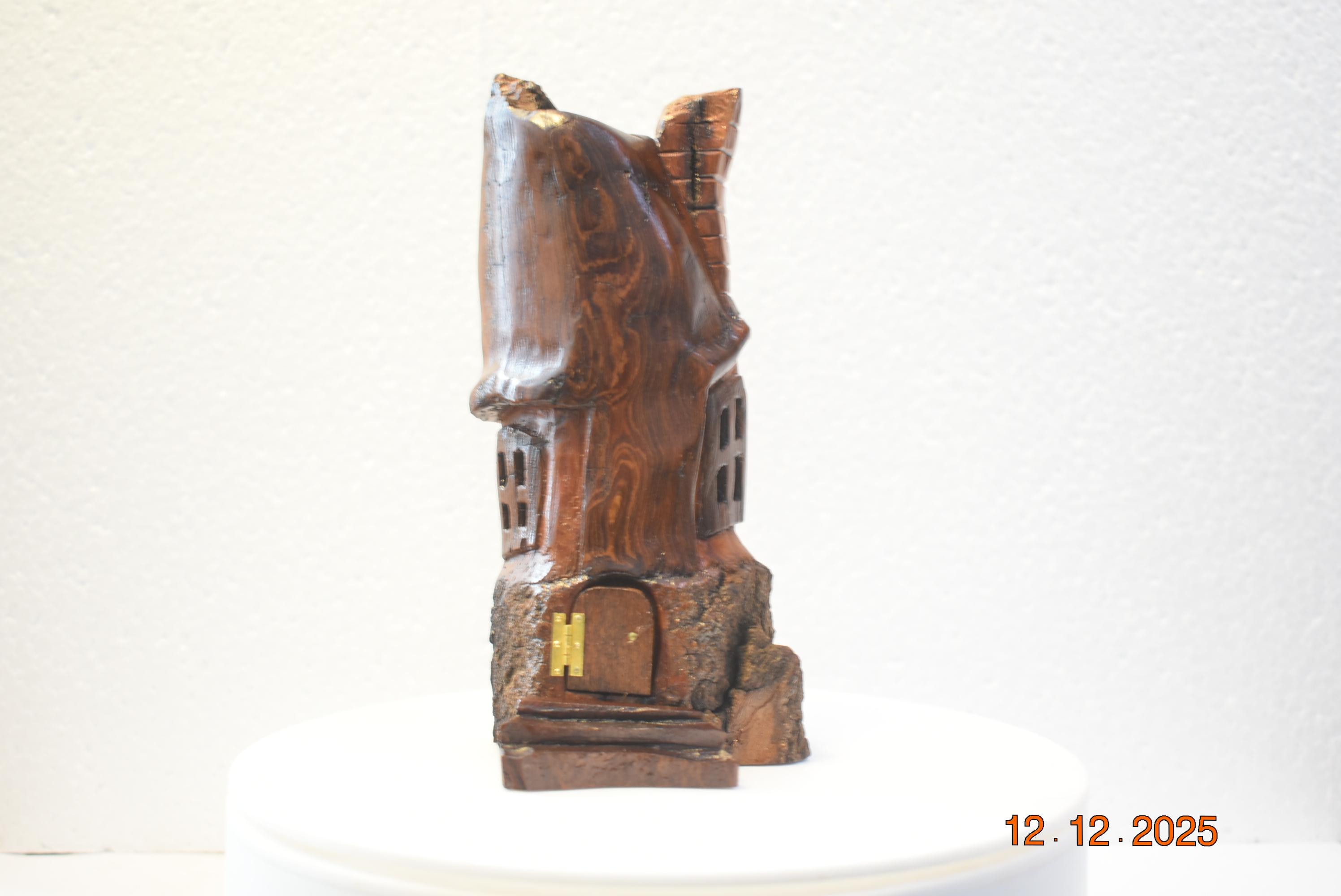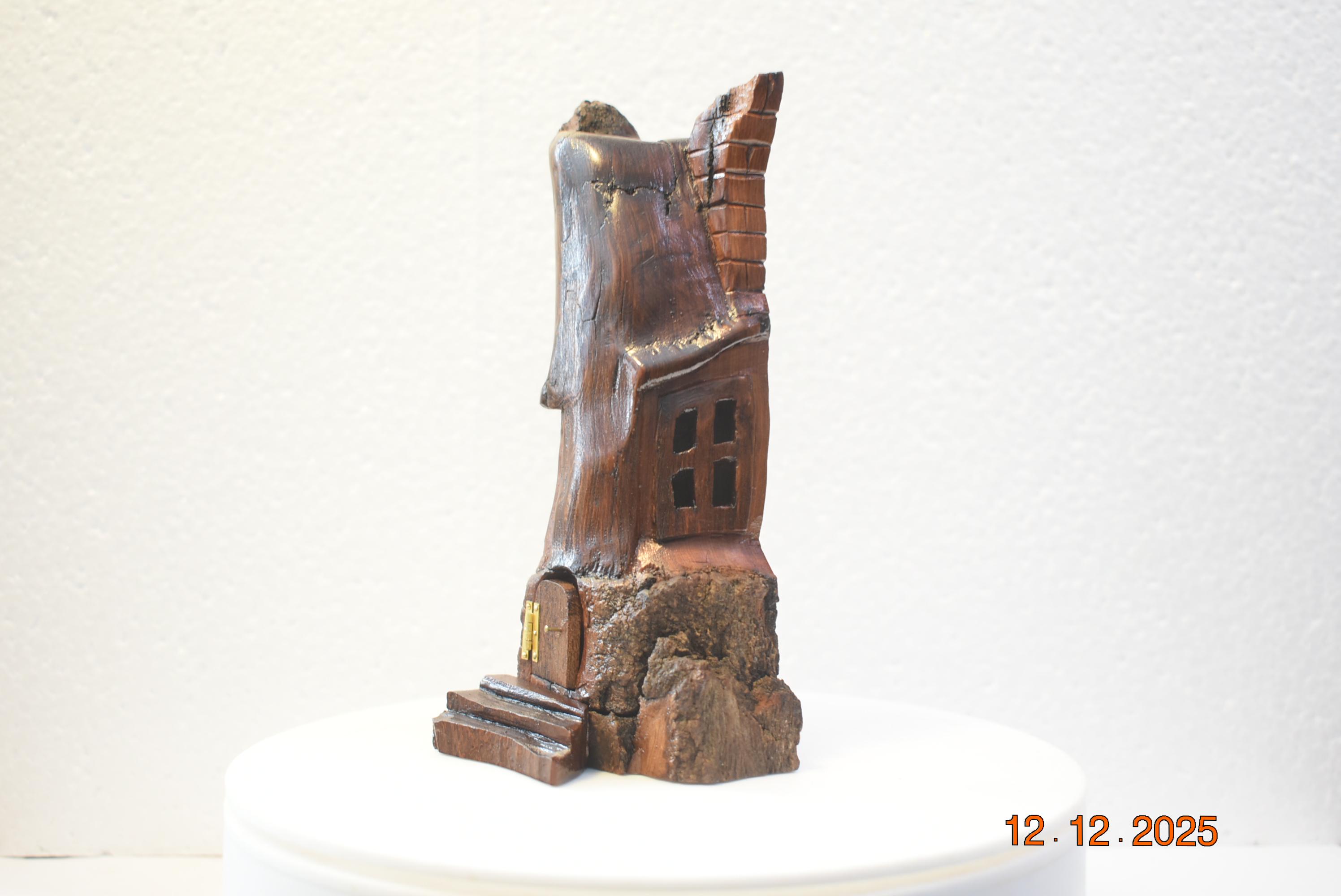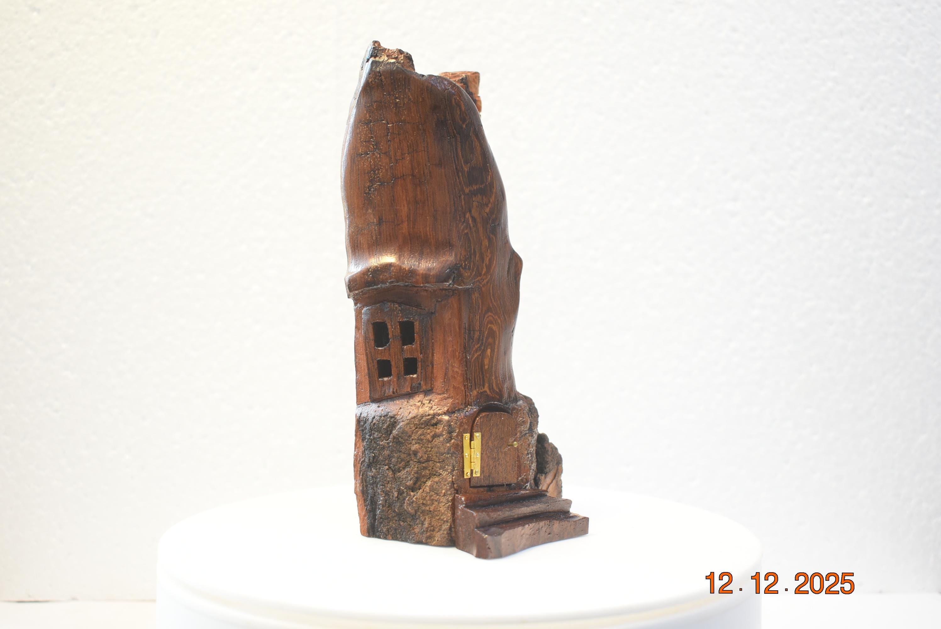 One of a kind Hand Carved cottonwood bark Wee folk home. 6.5 x 3 x 2