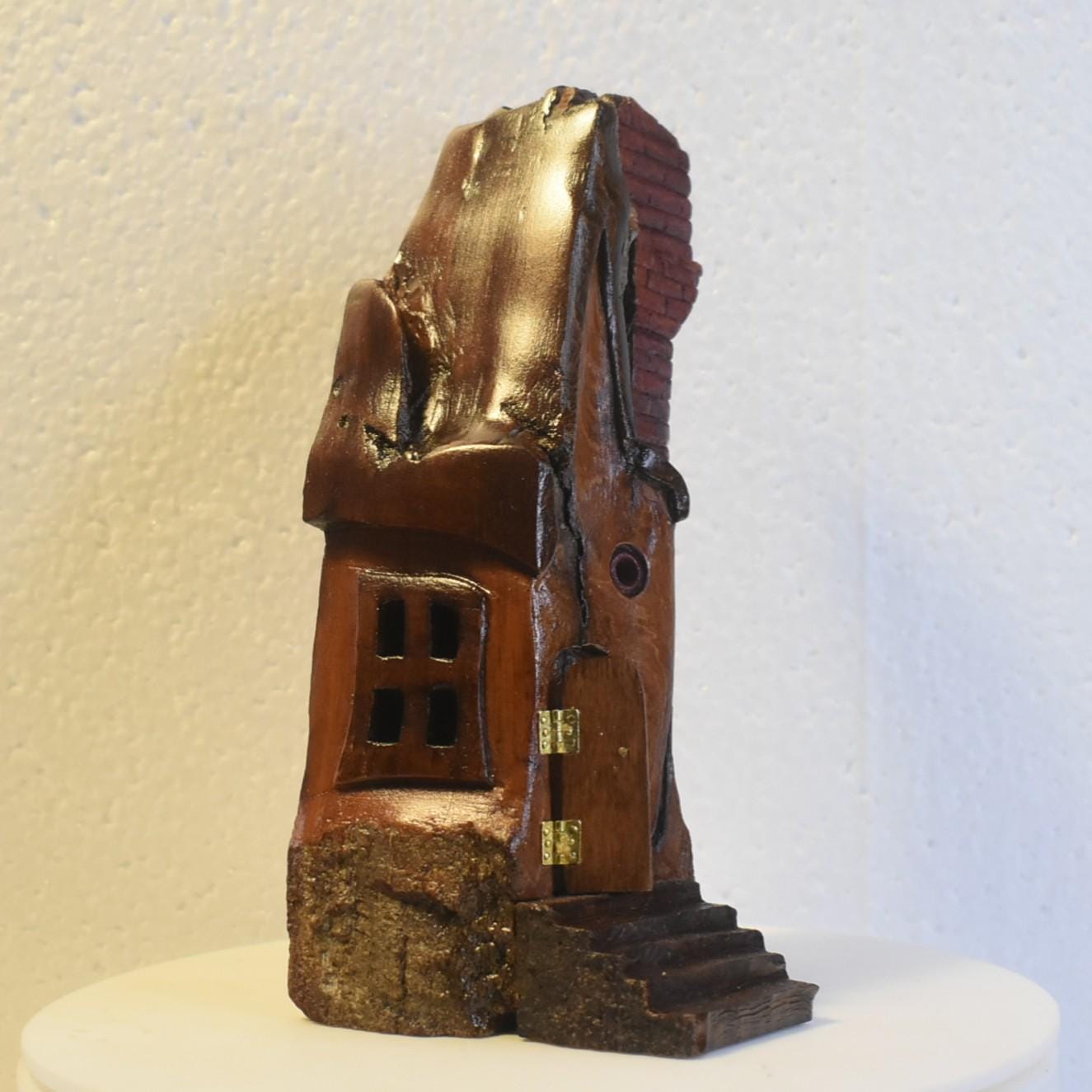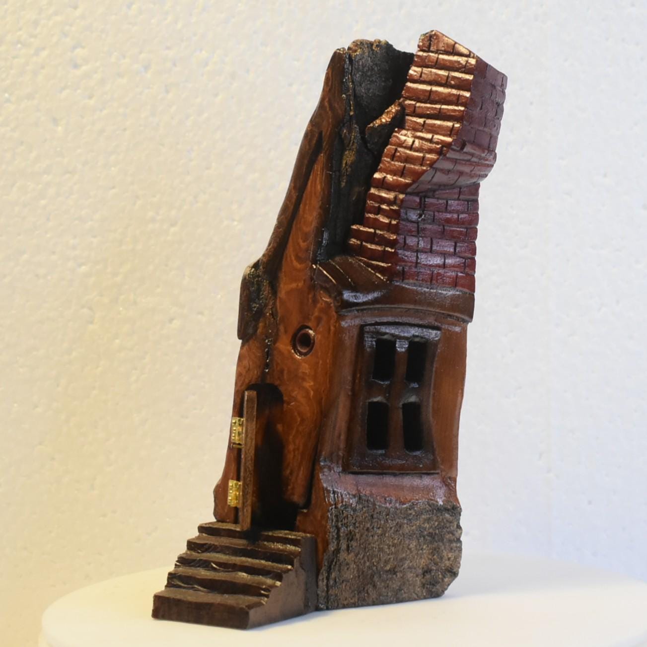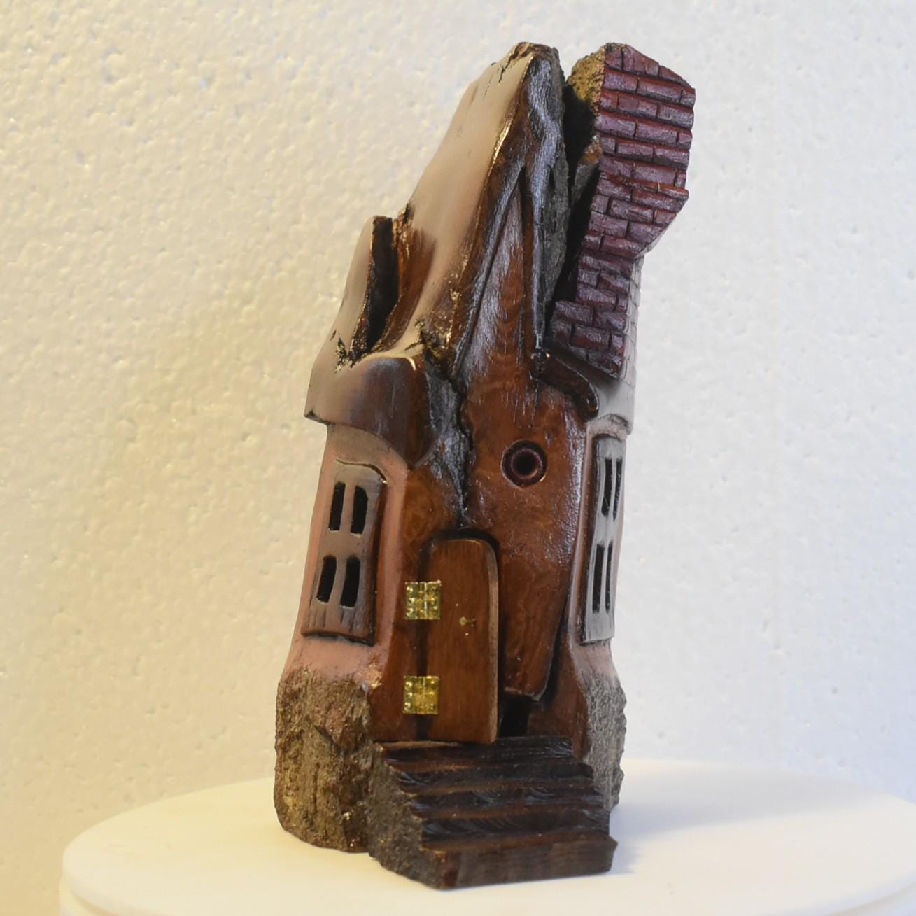 One of a kind Hand Carved cottonwood bark Wee folk home.7.5 x 3 x 3
